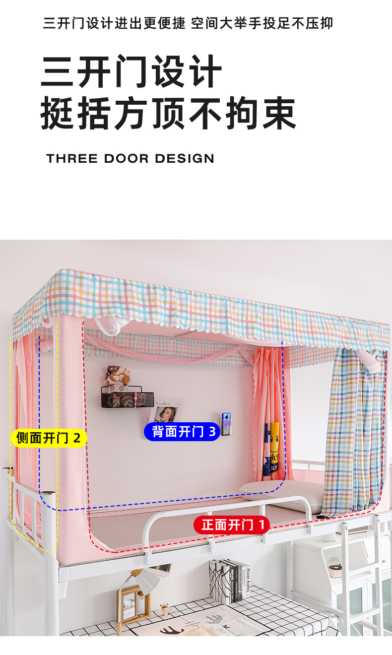 商品名称:(总)宅部落 2024新款特价款学生上下铺蚊帐强遮光床帘一体式蚊帐