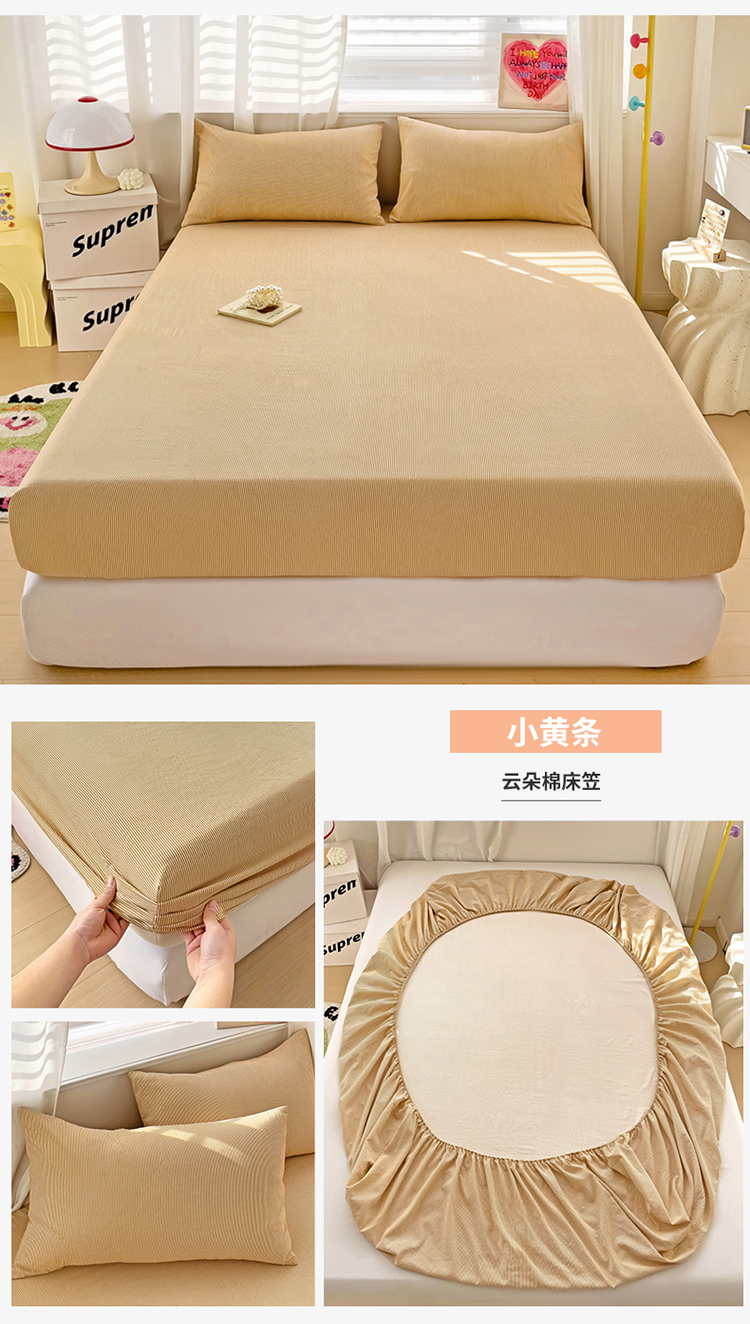 纽缦家纺 2024素色无印风云朵棉单床笠 小黄条