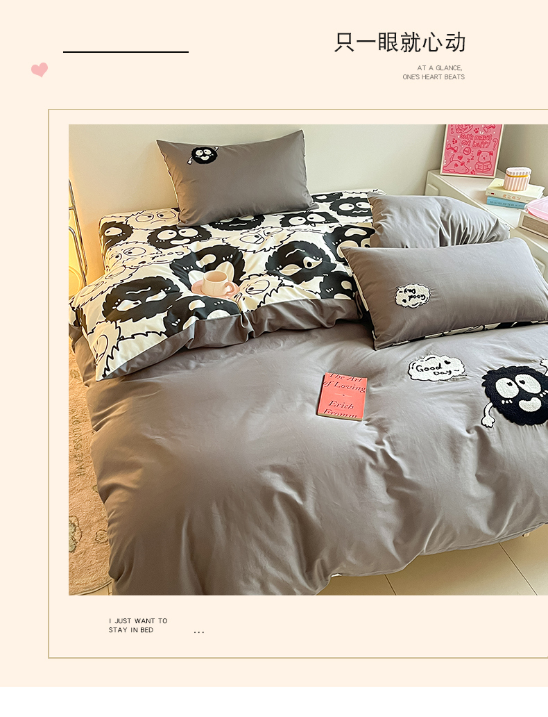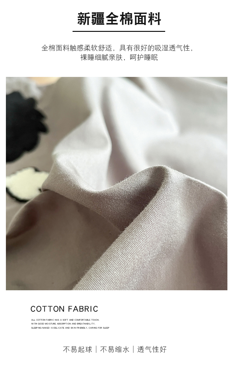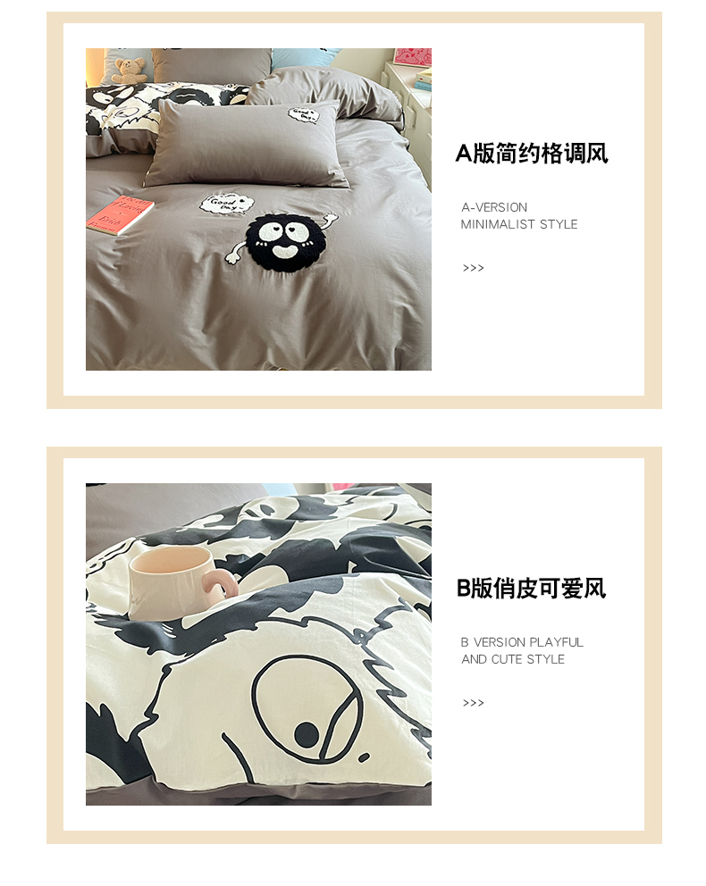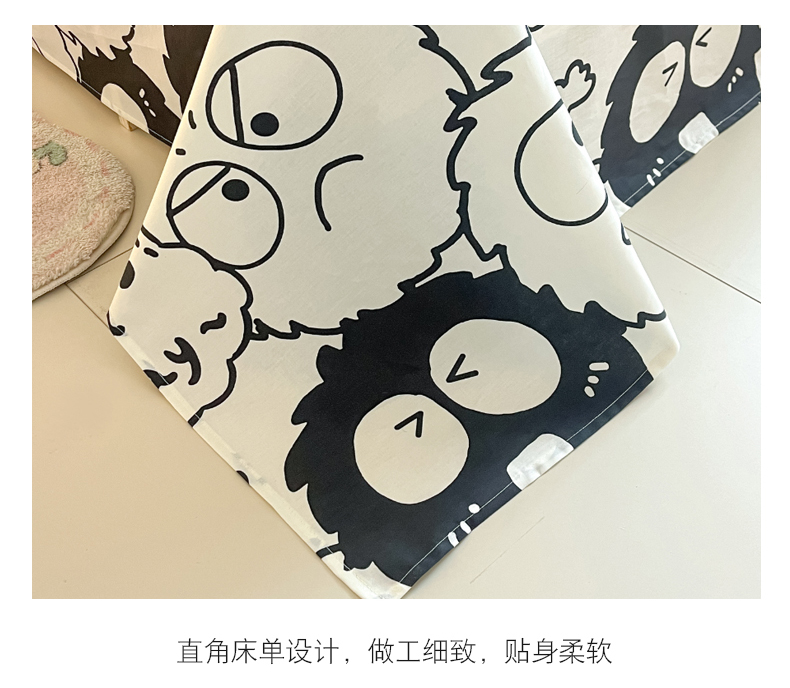商品名称:金丝鸟家纺 2024新款全棉混搭毛巾绣四件套可爱卡通库洛米系列 灰色小煤球
