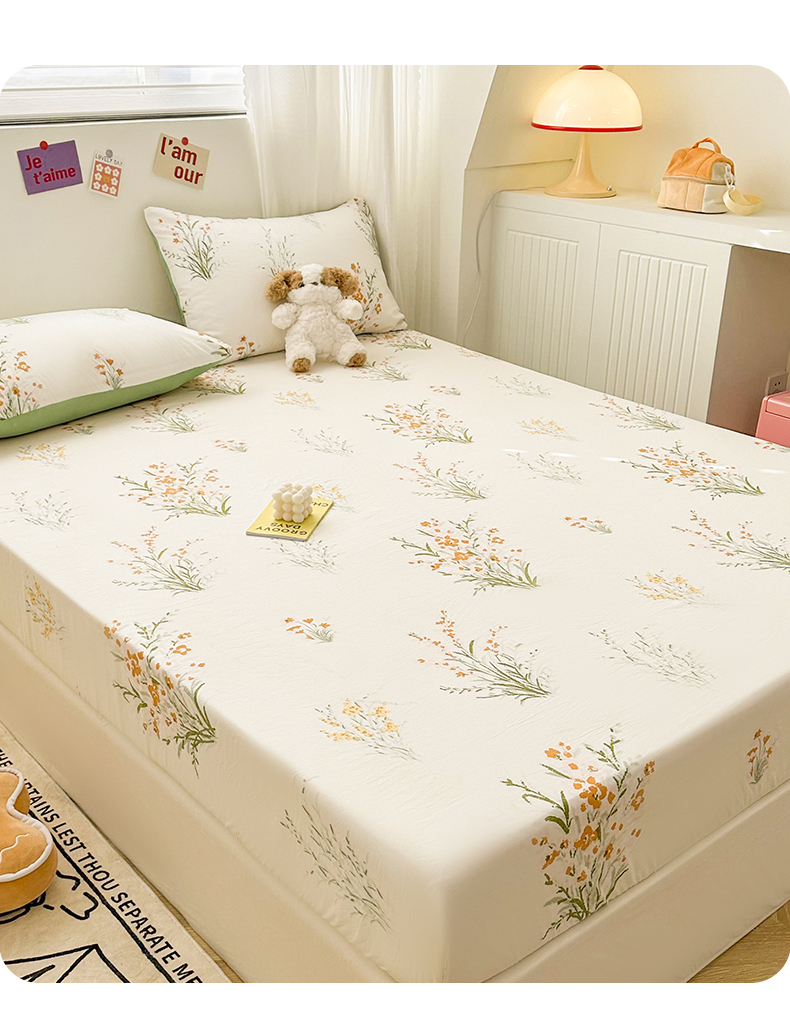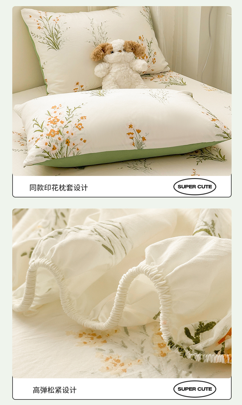 古吉梦 2024新款水洗棉小清新印花床笠 仙草