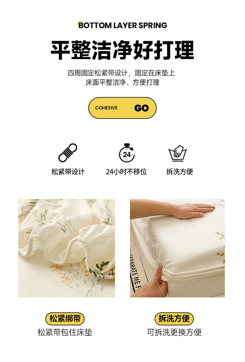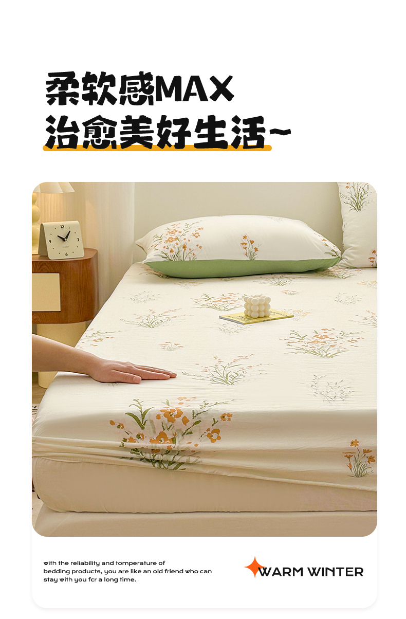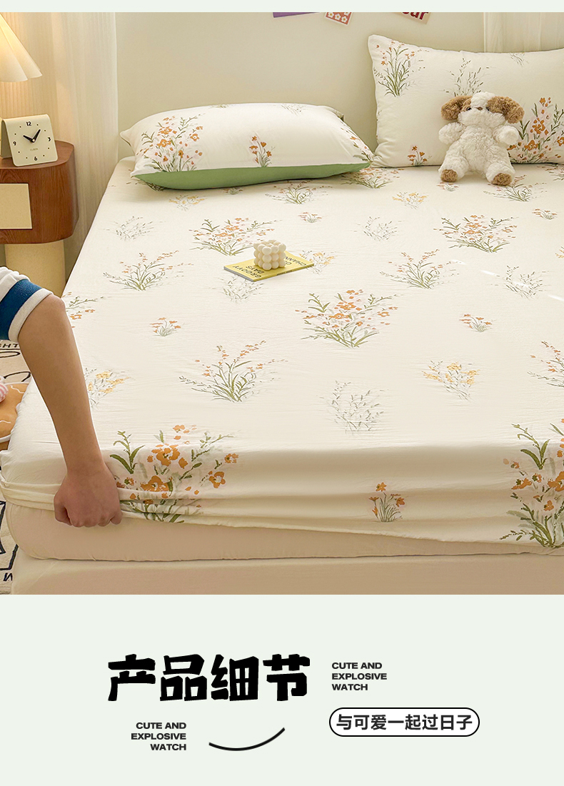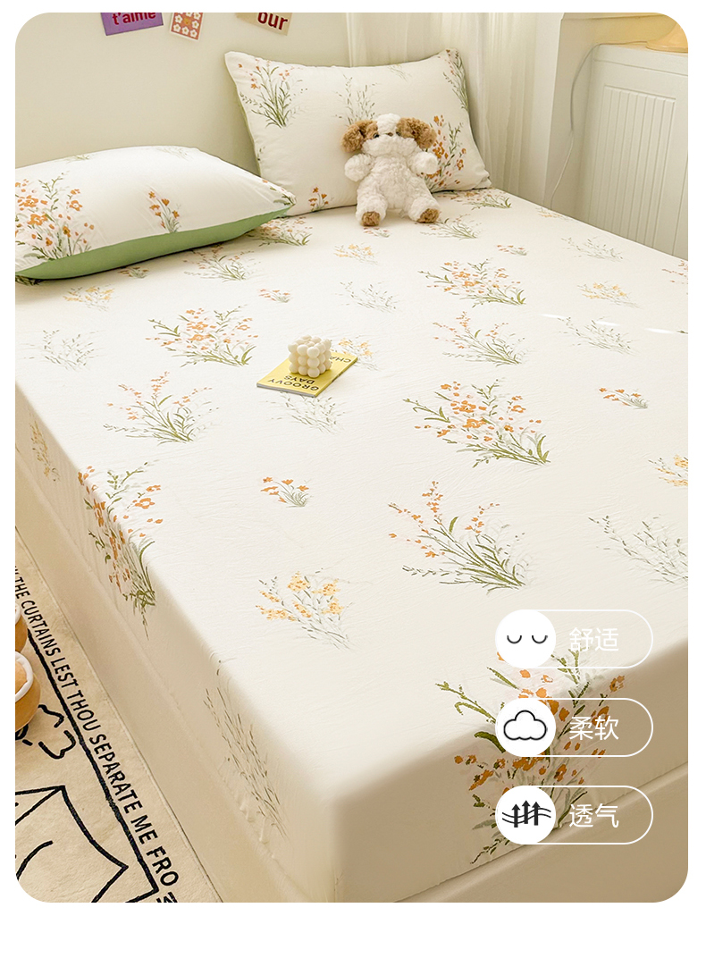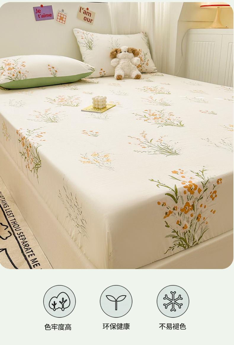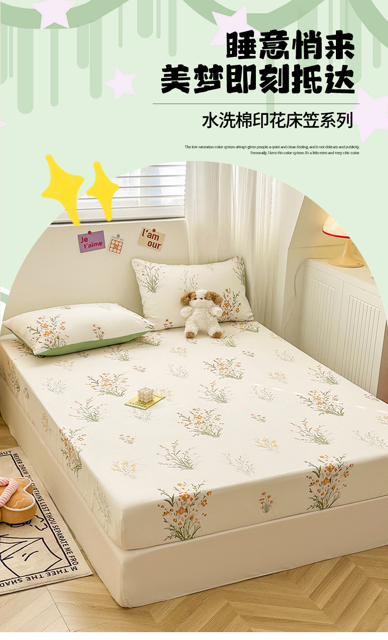 • 91家纺网 家纺一手货源 找家纺 古吉梦 2024新款水洗棉小清新印花床笠 仙草