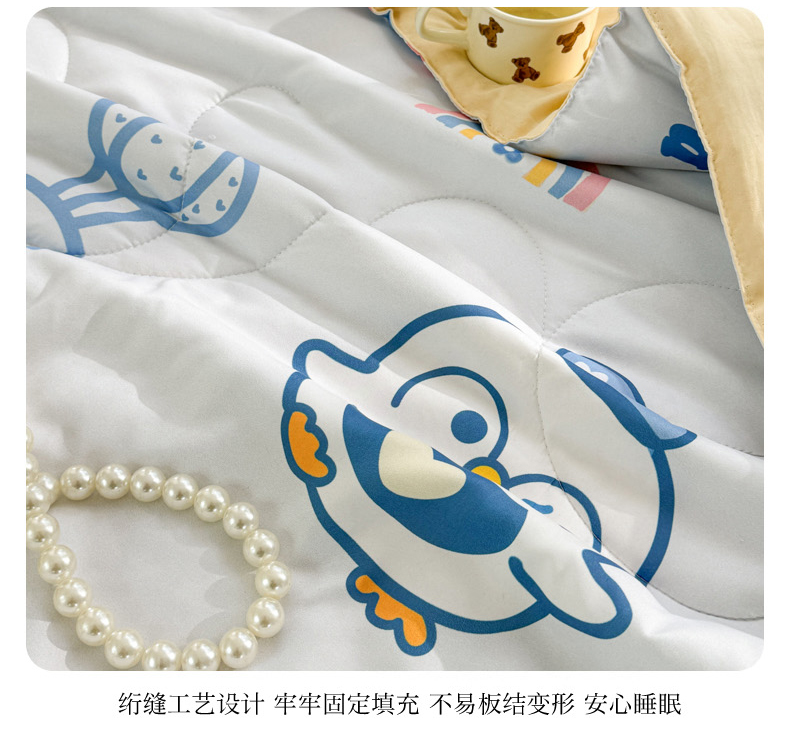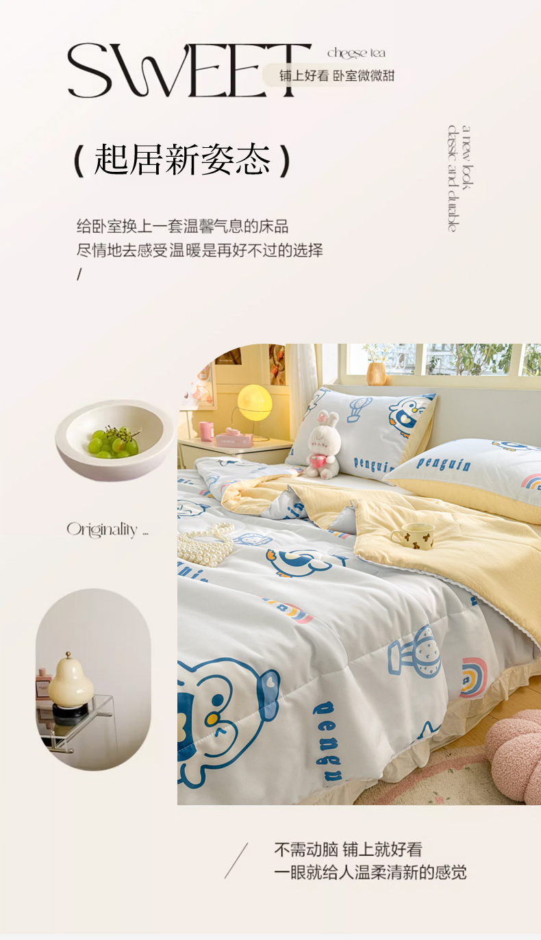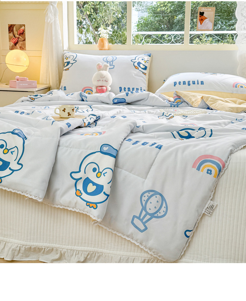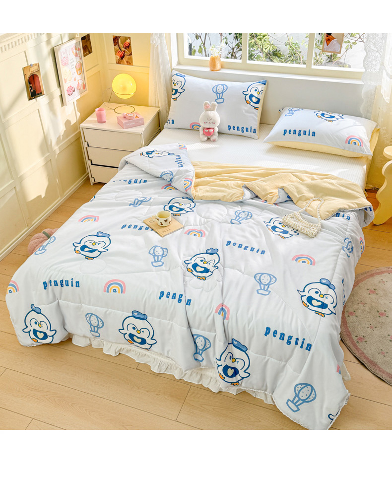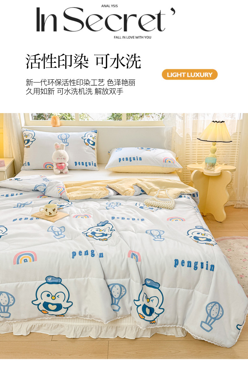 寐居家纺 2024新款水洗棉小花边夏被 呆萌企鹅