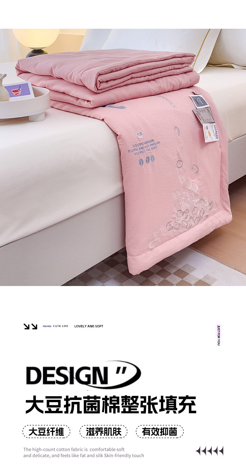 优姿家纺 2024新款提花泡泡棉刺绣大豆抗菌夏被 豆沙
