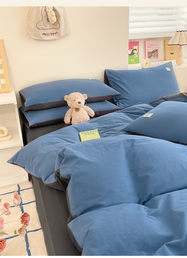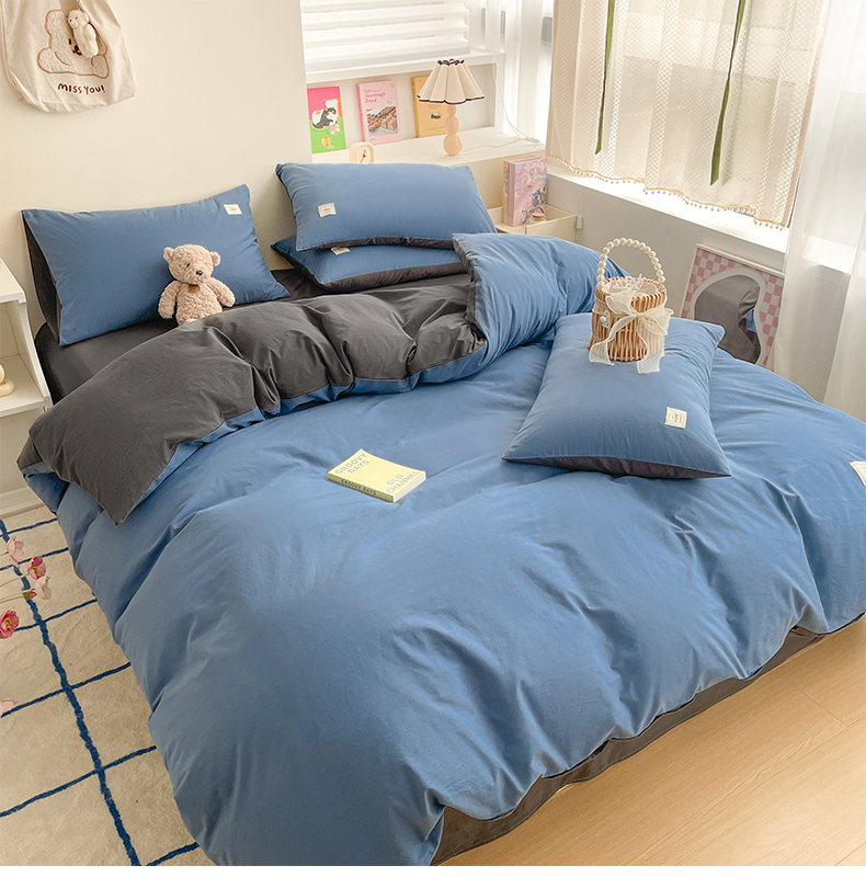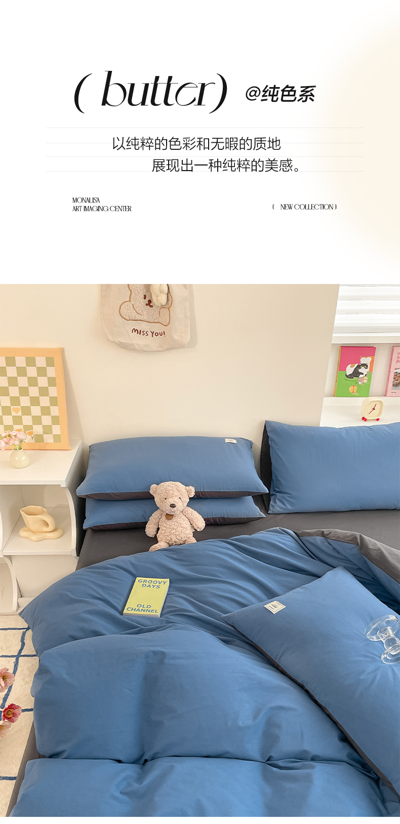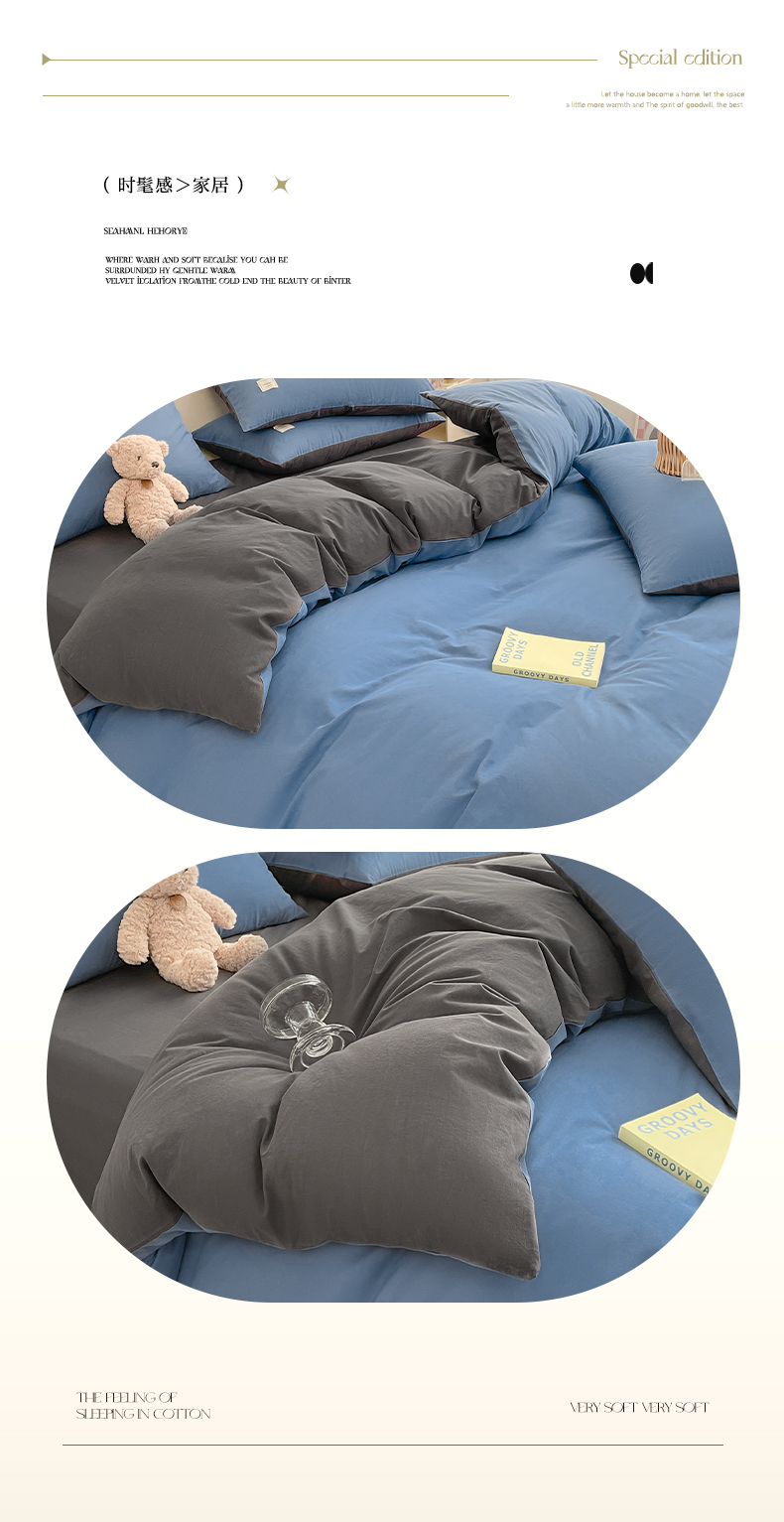 雅居纺家纺 2024新款全棉素色水洗棉四件套 牛仔蓝低调灰
