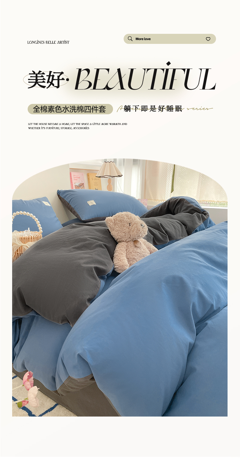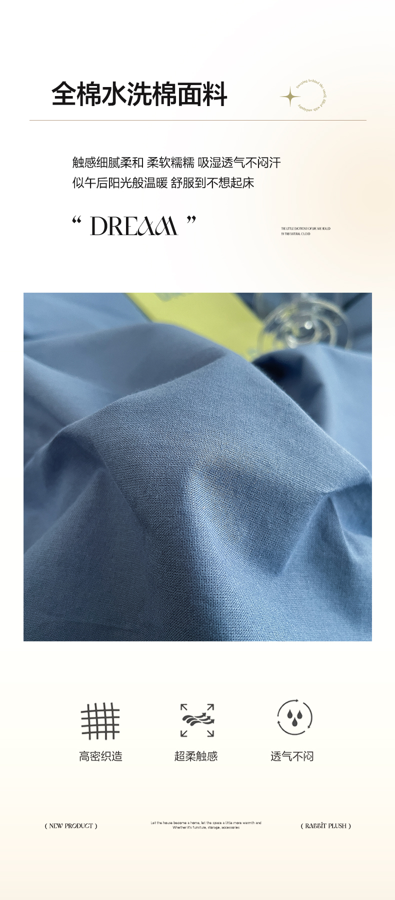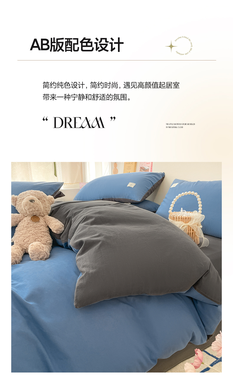 商品名称:雅居纺家纺 2024新款全棉素色水洗棉四件套 牛仔蓝低调灰