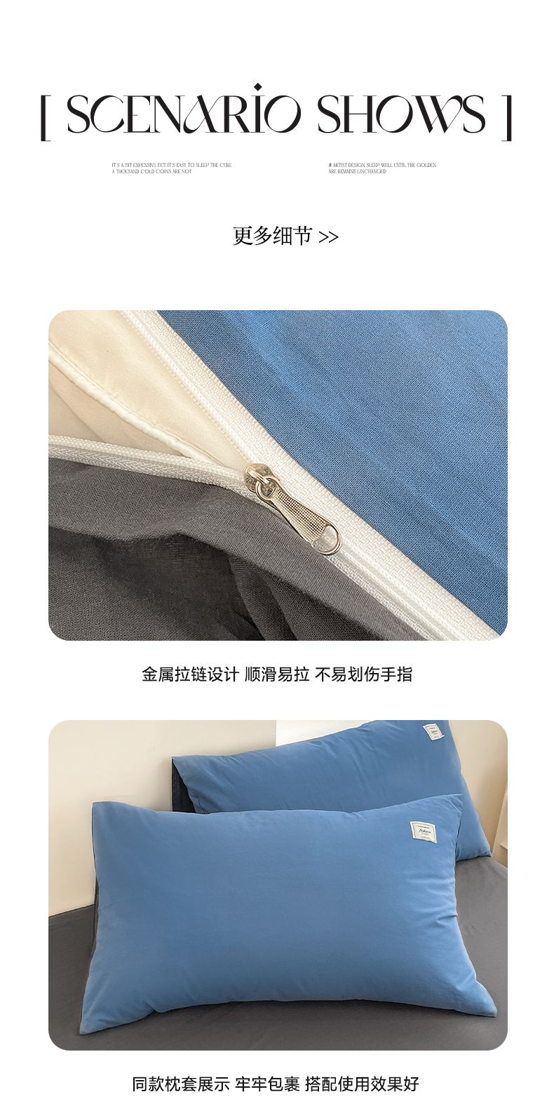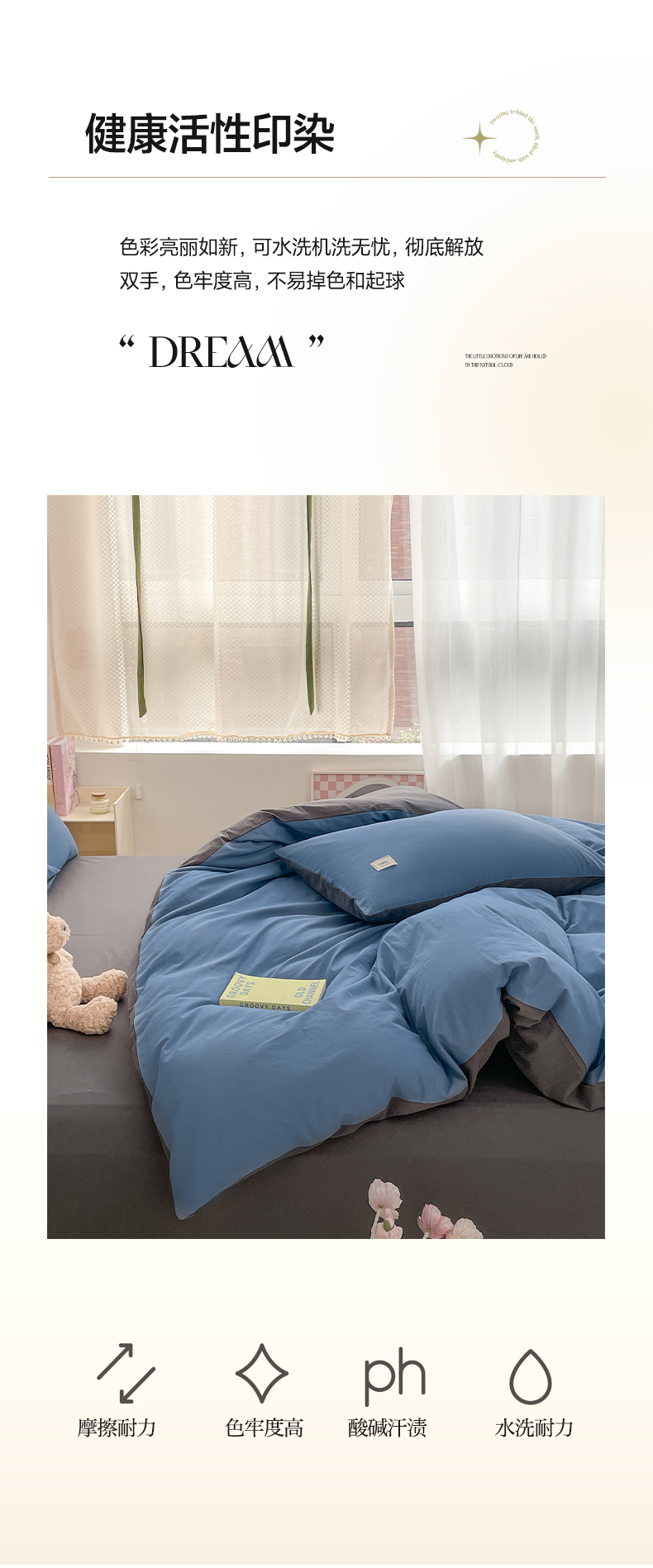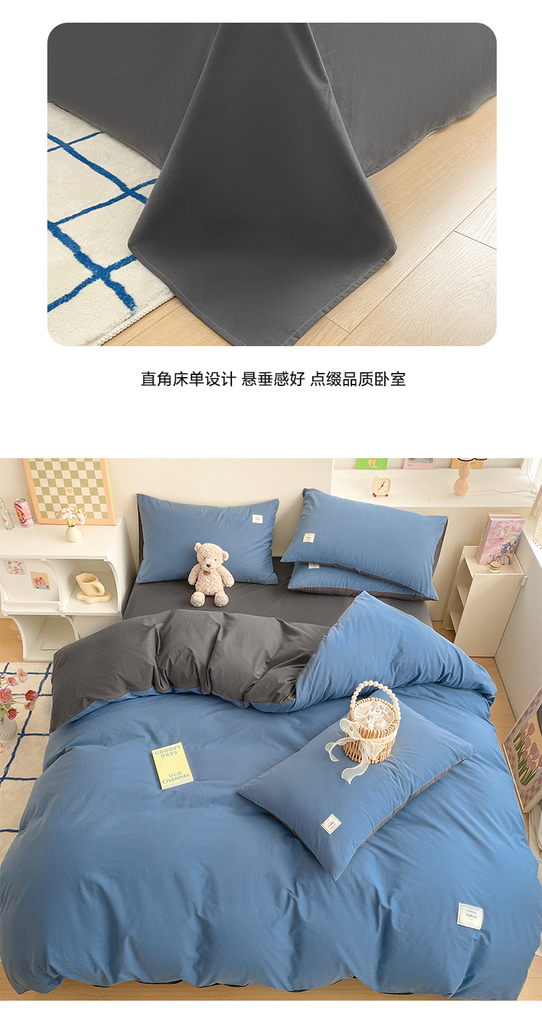 商品名称:雅居纺家纺 2024新款全棉素色水洗棉四件套 牛仔蓝低调灰