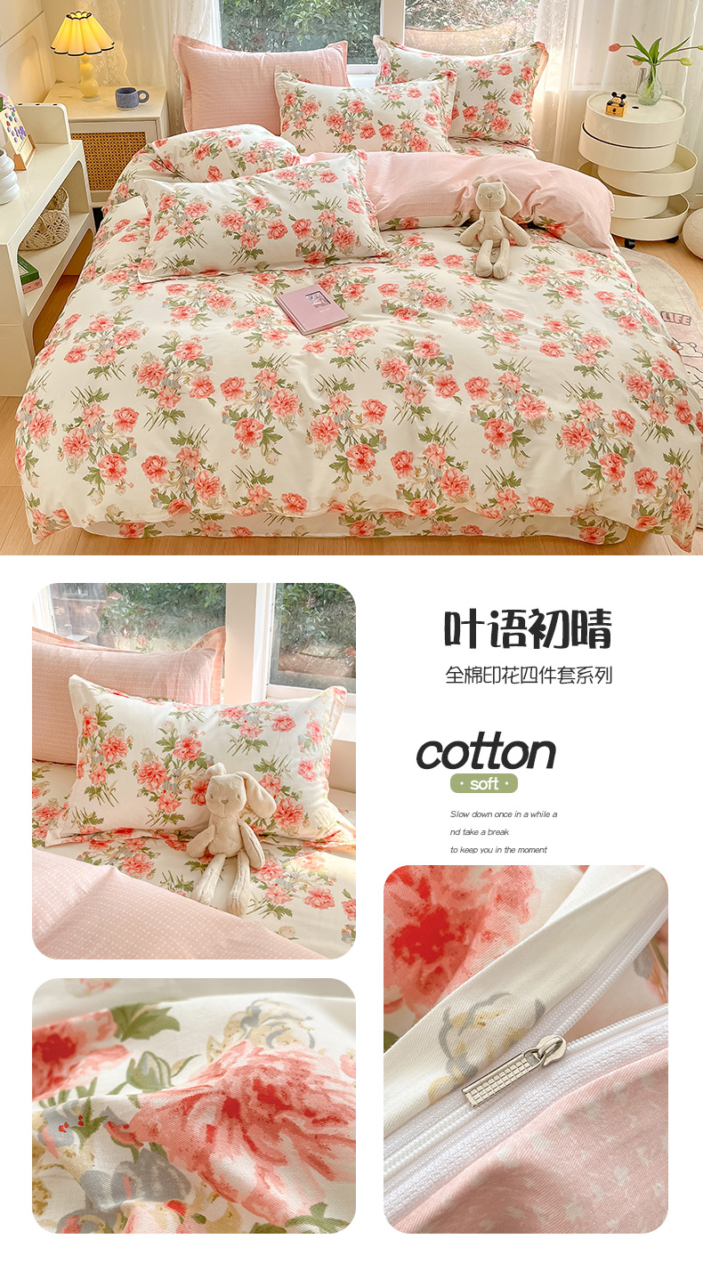 绵庭家纺 2024新款AB版全棉印花系列四件套 叶语初晴