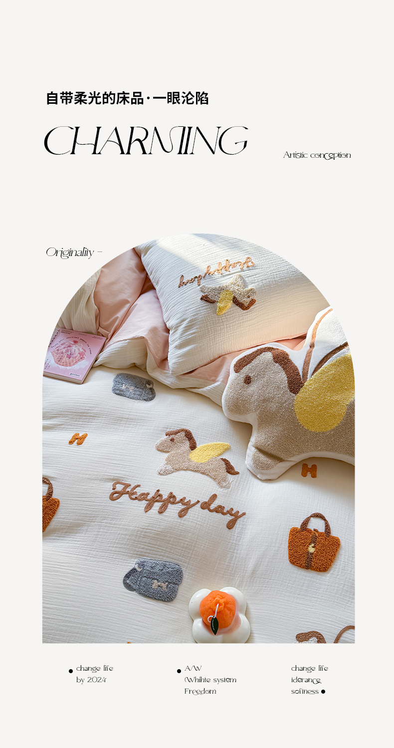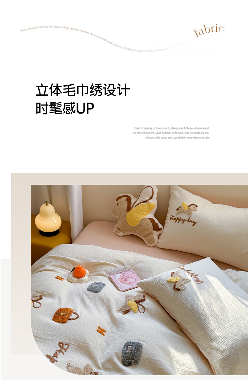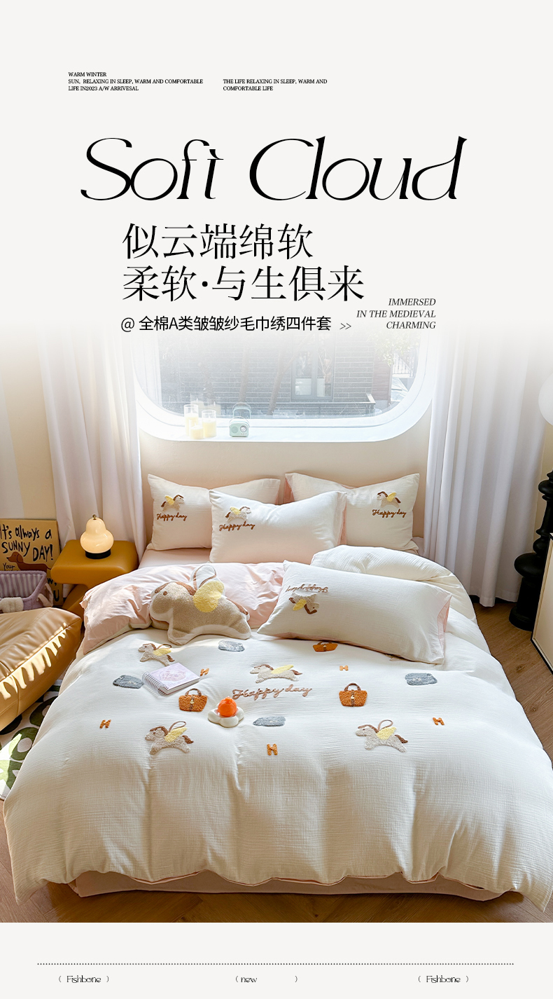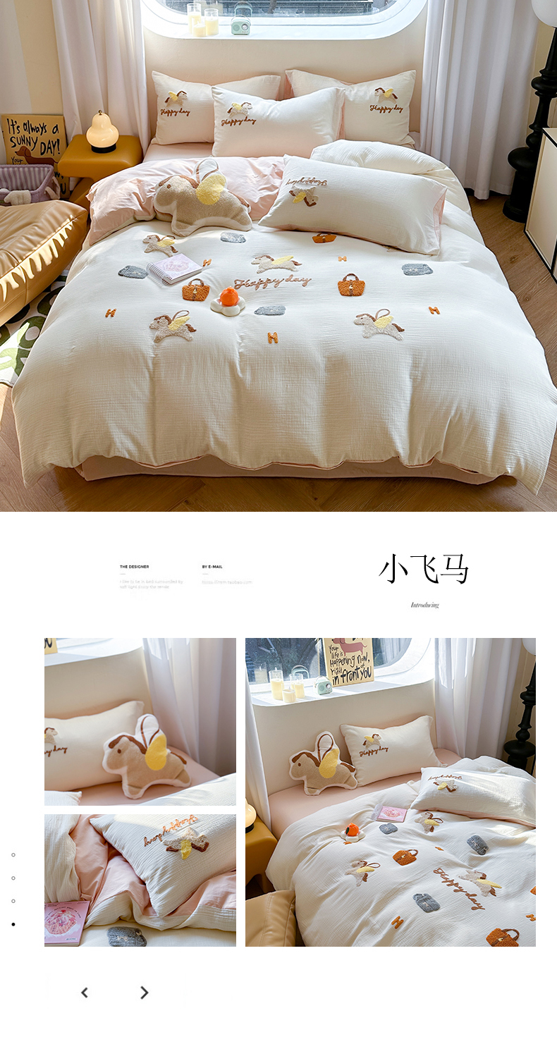 商品名称:眠屿 2024全棉A类皱皱纱毛巾绣四件套 小飞马