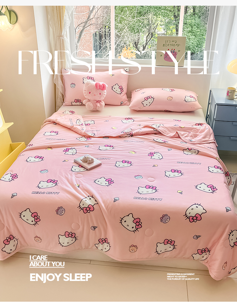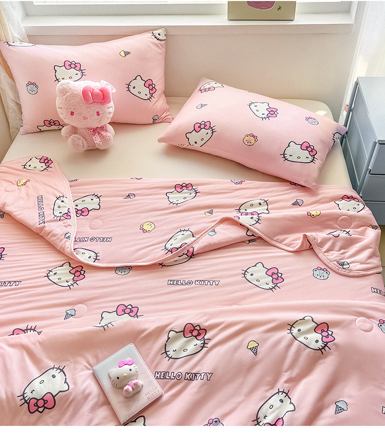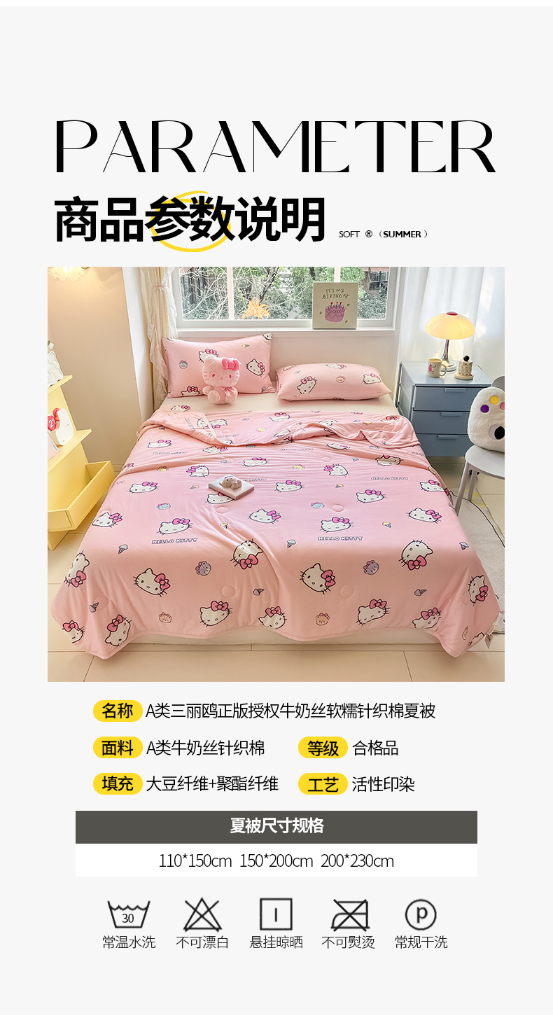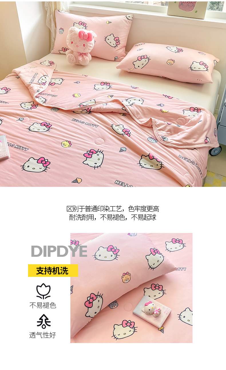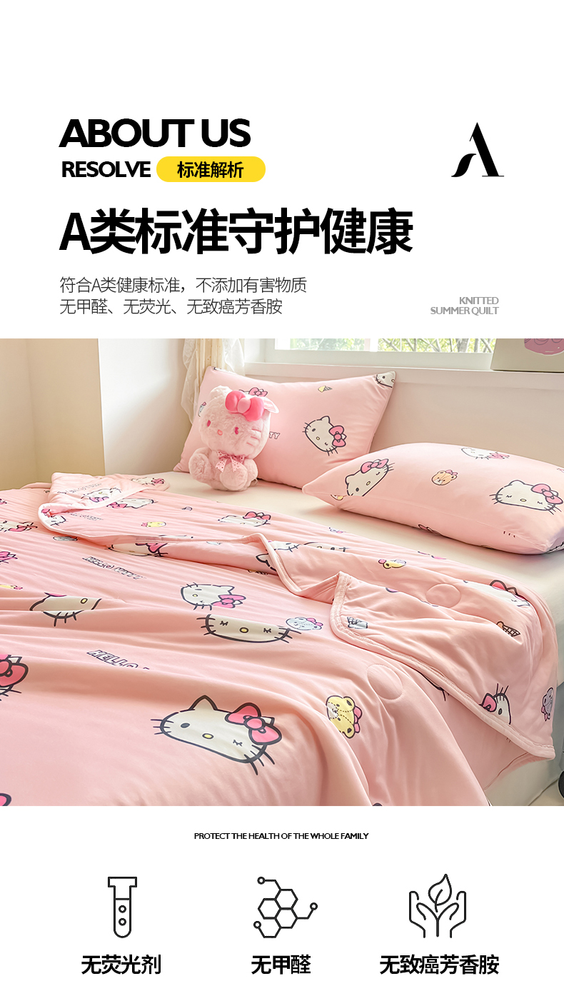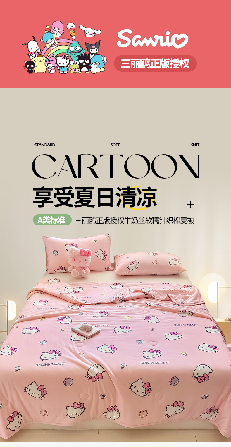 • 91家纺网 家纺一手货源 找家纺 金爱家 2024新款A类三丽鸥正版授权高品质牛奶丝软糯针织棉夏被系列 针织棉三丽鸥-粉粉甜筒kitty