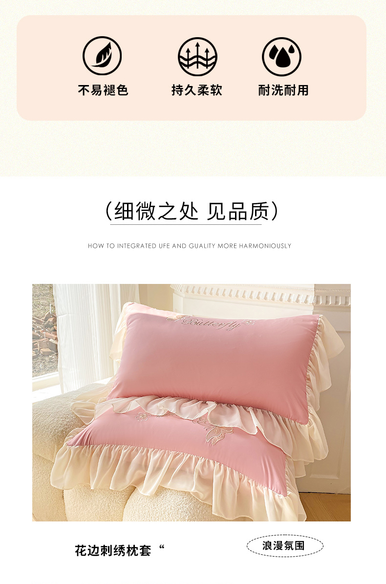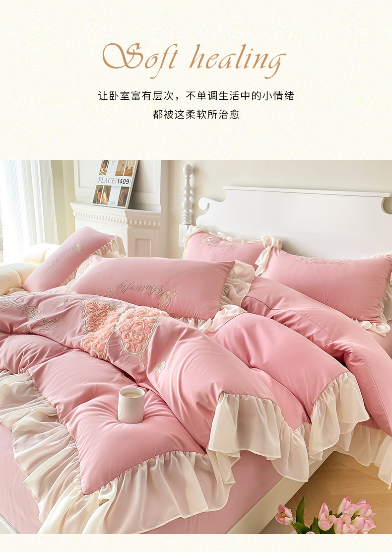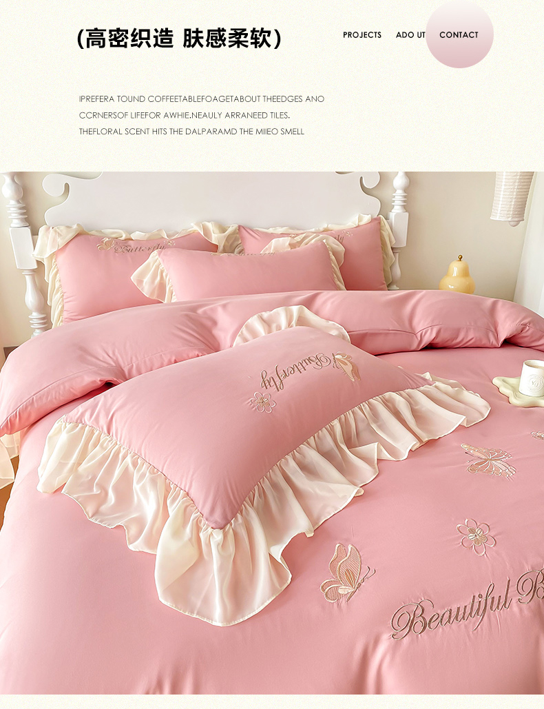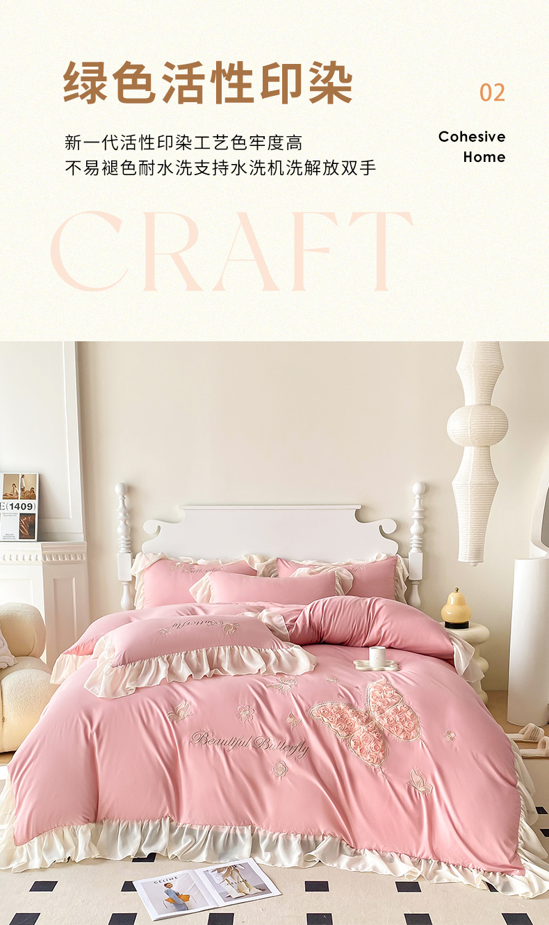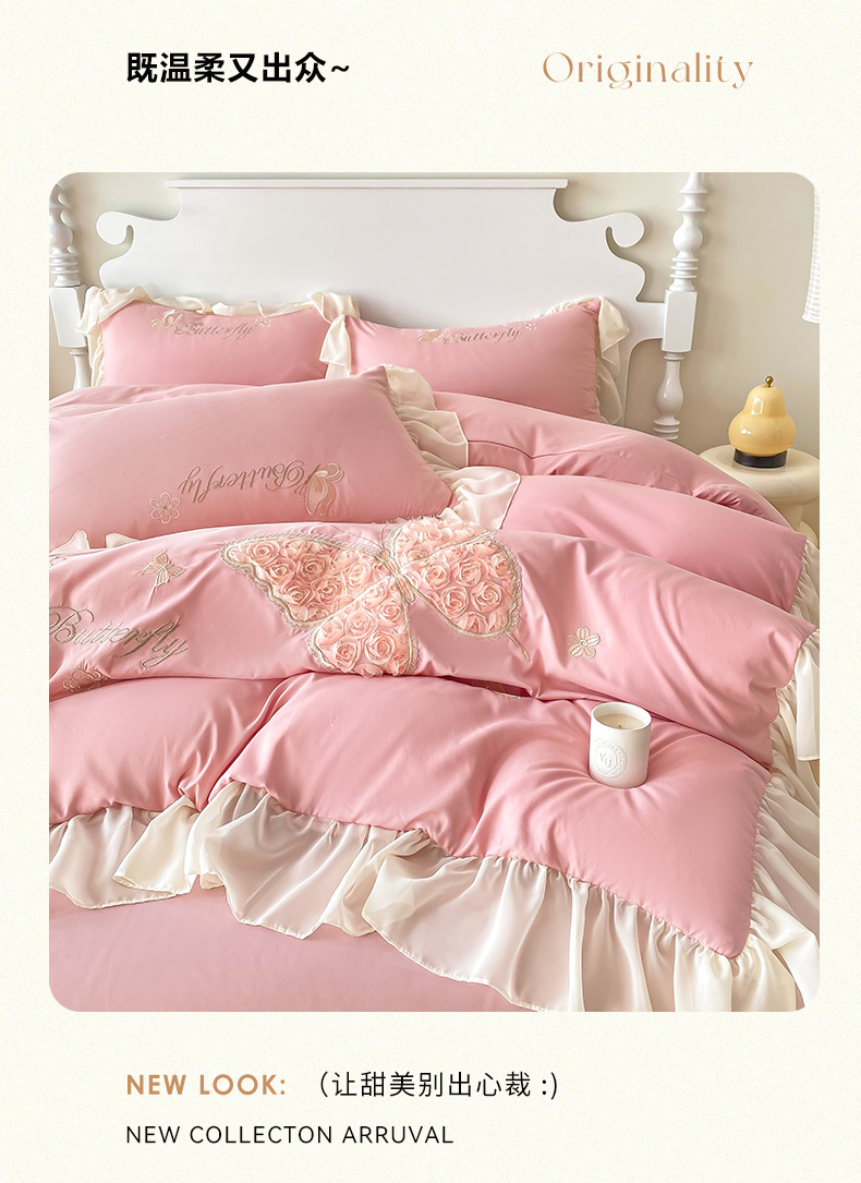 富盛 2024新款水洗亲肤棉立体刺绣四件套公主风四件套-蝴蝶系列 蝴蝶-豆沙
