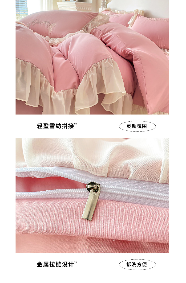 (总)富盛家纺 2024新款水洗亲肤棉立体盘花刺绣公主风四件套,伊莉莎—粉,伊莉莎—白,伊莉莎—紫,伊莉莎—黄,伊莉莎—浅绿,伊莉莎—蓝,伊莉莎—豆沙,伊莉莎—嫩绿