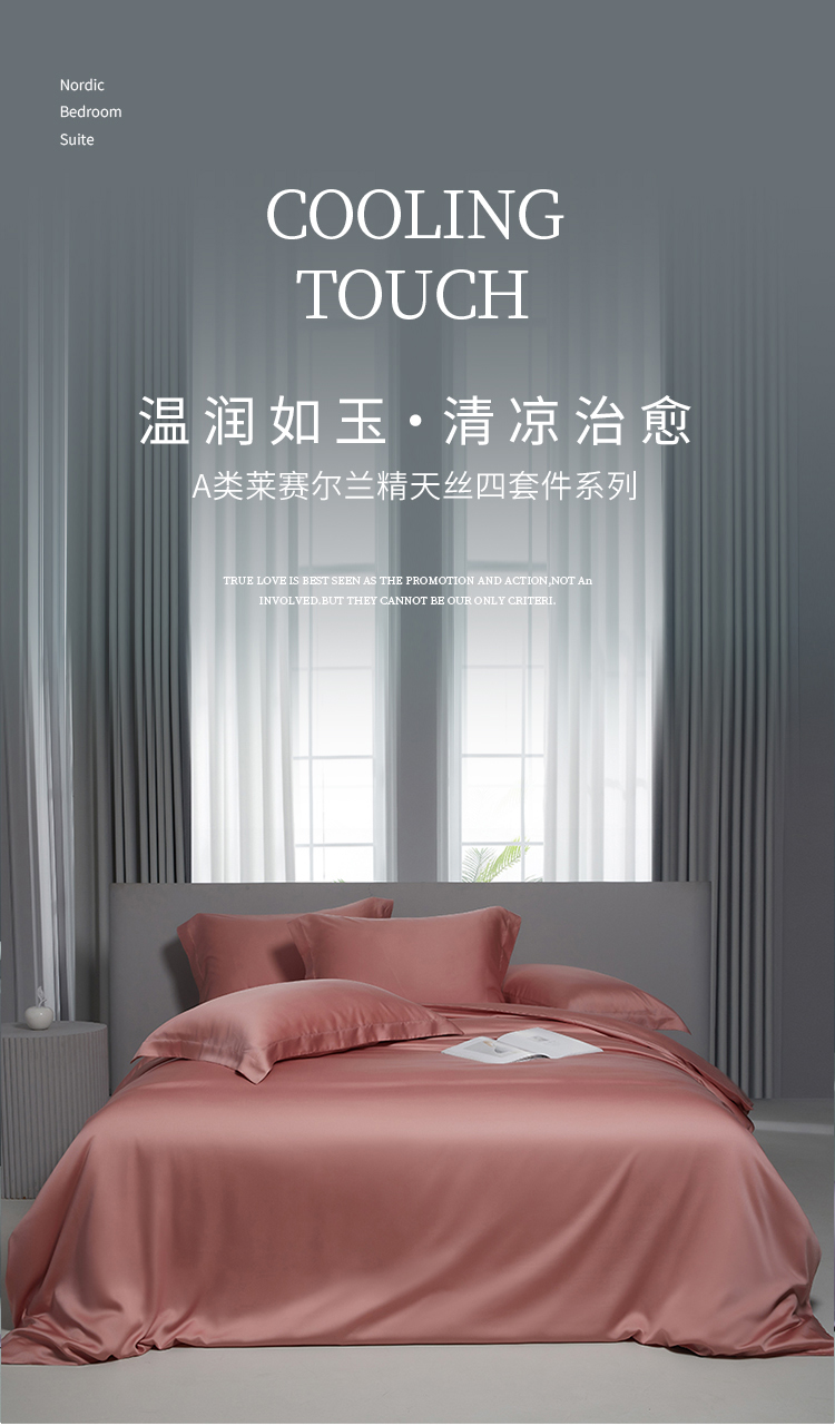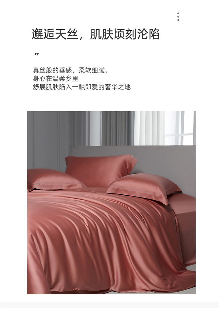 当前位置: 91家纺网 > 商品网购 > 床品套件 > 四件套 > 莱赛尔四件套 > 莱阁亿 2025新款莱赛尔兰精60支天丝纯色系列四件套 密豆红茶