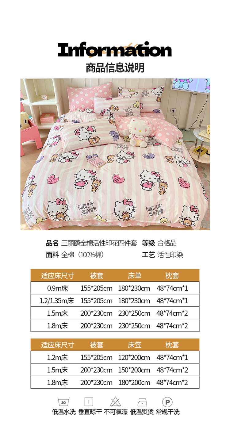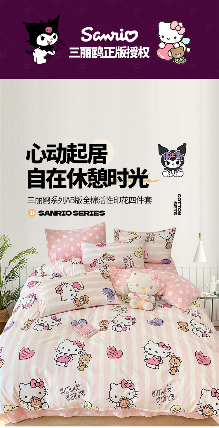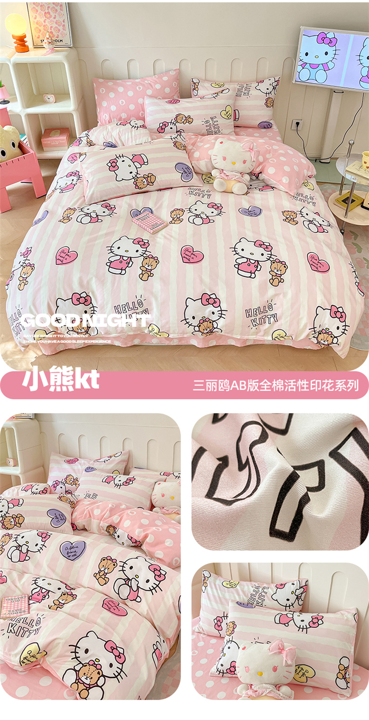 当前位置: 91家纺网 > 商品网购 > 床品套件 > 四件套 > 全棉普通四件套 > 博雅 2024新款全棉三丽鸥AB版活性印花四件套 小熊kt