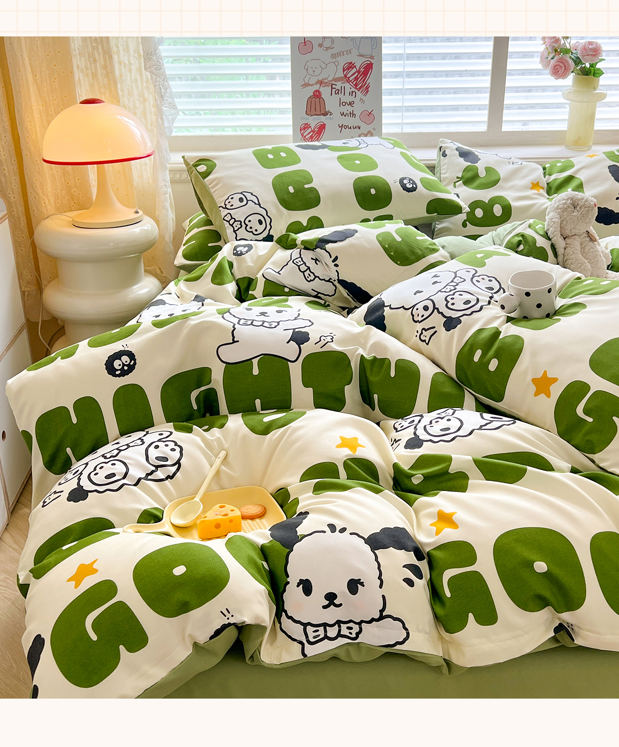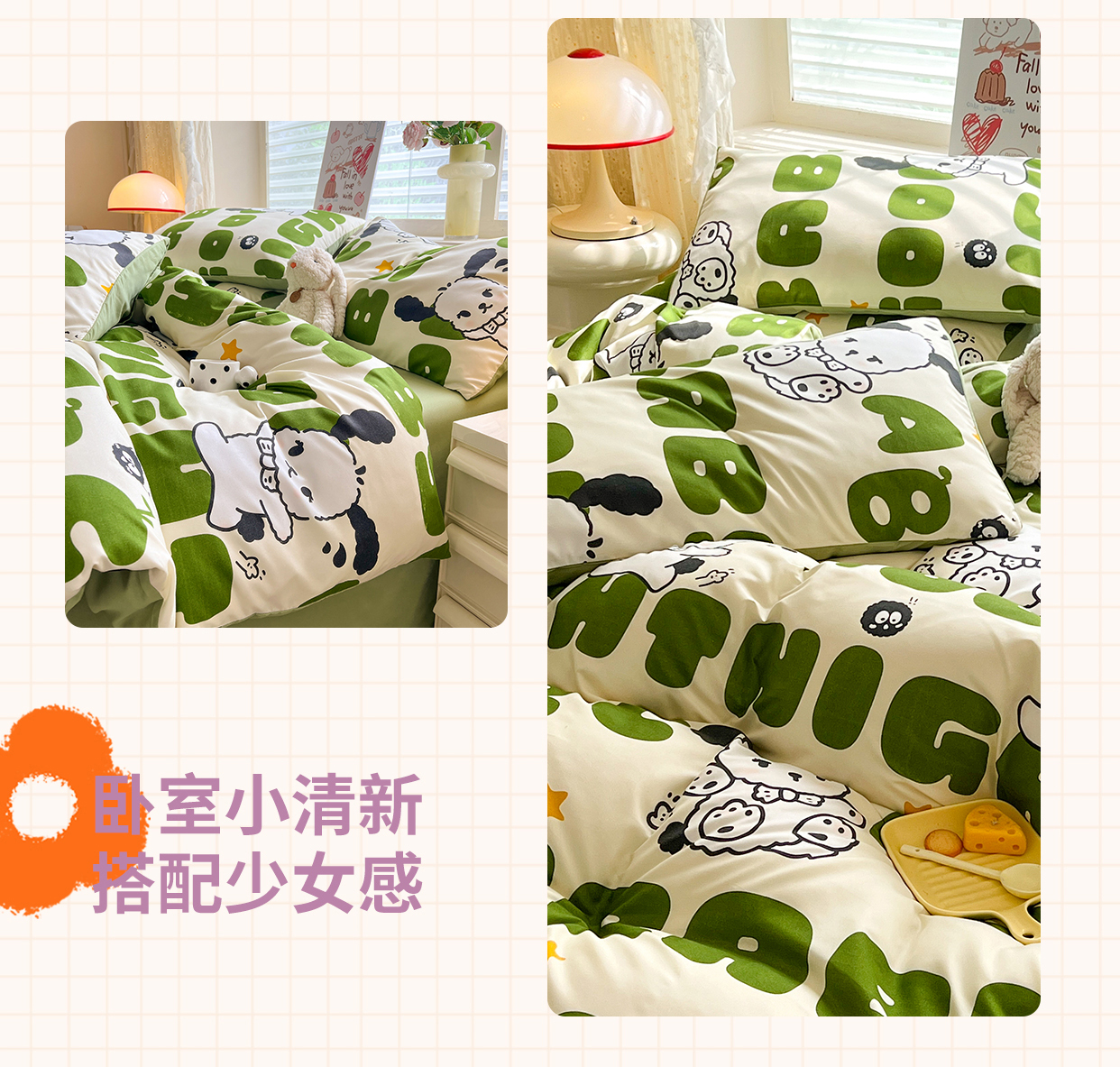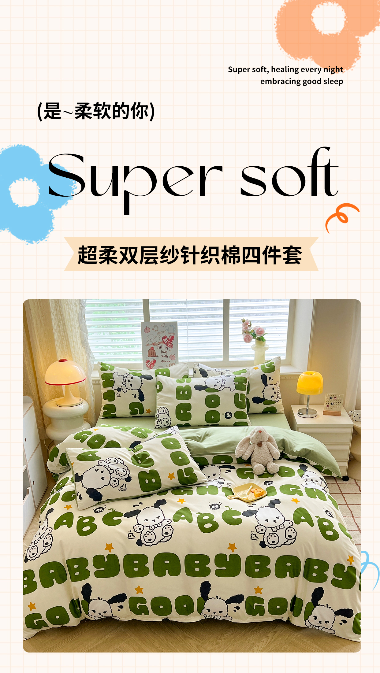 当前位置: 91家纺网 > 商品网购 > 床品套件 > 四件套 > 水洗棉四件套 > 妖妖家纺 2024新款超柔软糯水洗云朵棉印花四季款四件套 字母狗