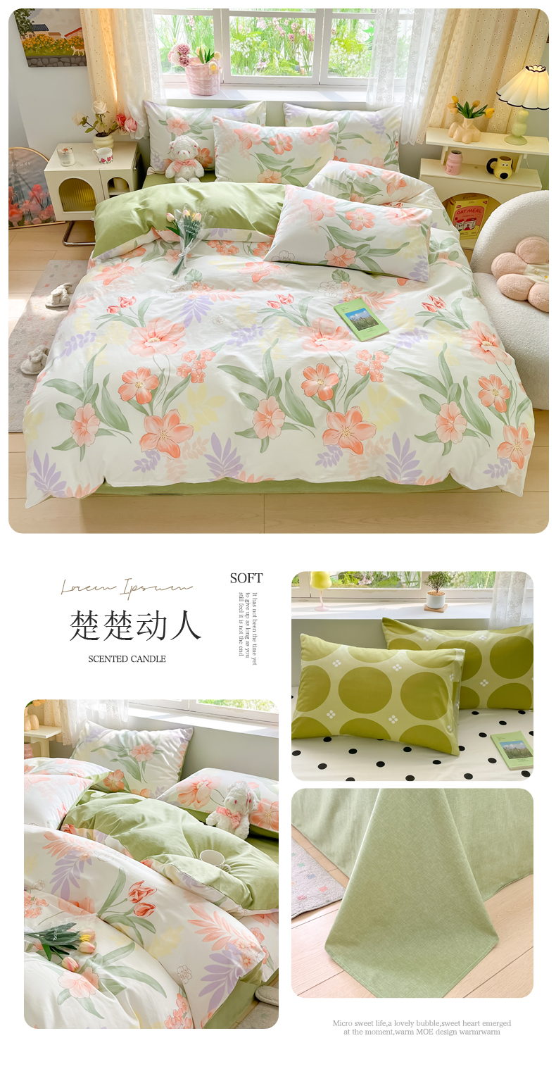 商品名称:芊寻家居 2024新款全棉13372花卉系列四件套 楚楚动人