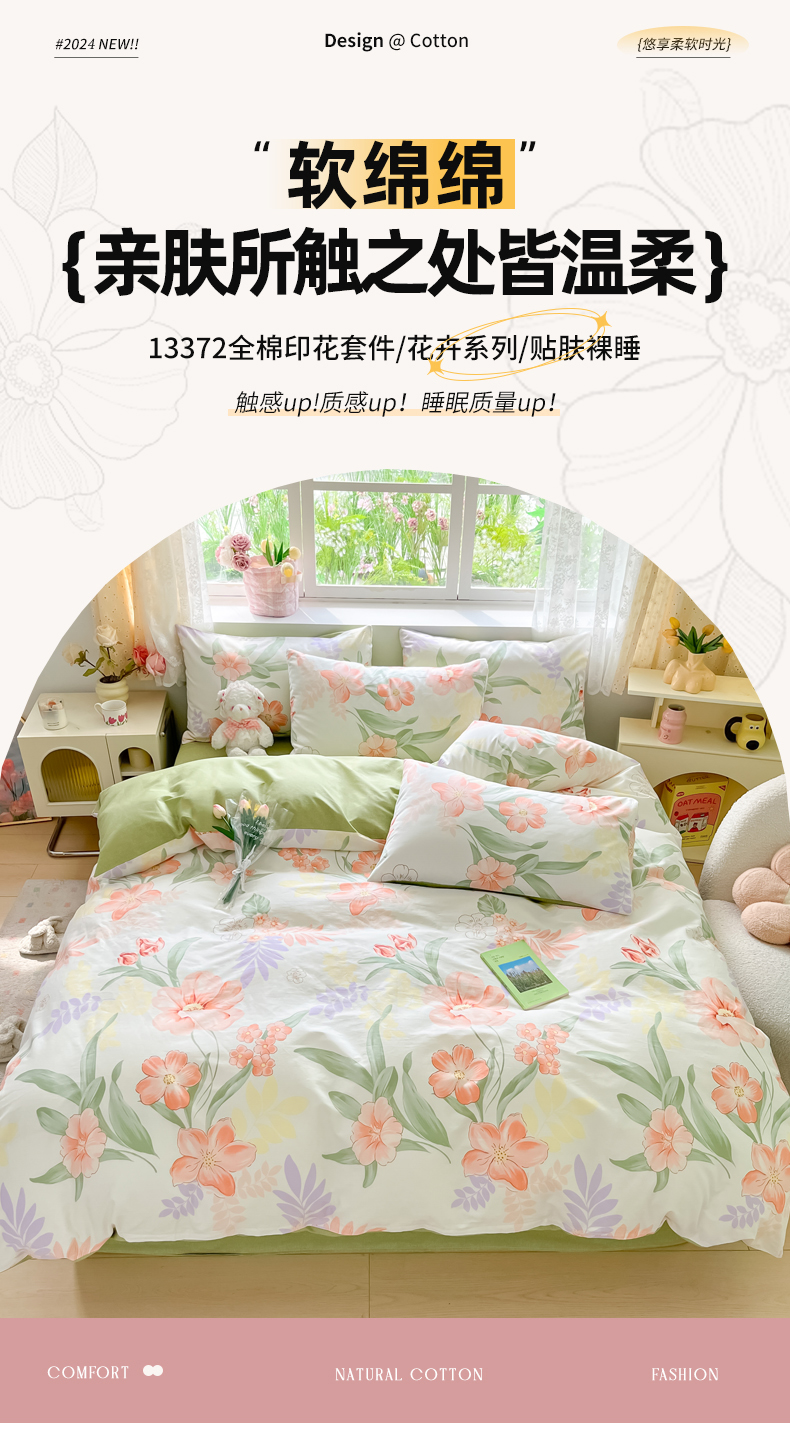 (总)芊寻家居 2025新款13372全棉印花系列四件套,柏拉图,草莓甜心,朵琦,广岛之恋,花丛 粉,幻蝶 粉,兰黛 绿,玫瑰情缘 粉,梦境女孩 米,茉莉清雨 紫,暮云 灰,青柠,如约,盛夏,小时代,小熊日记 棕,雅姿,芷若