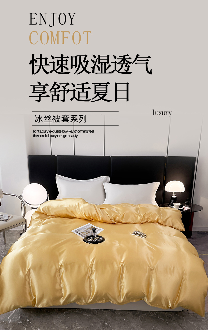 当前位置: 91家纺网 > 商品网购 > 床品套件 > 四件套 > 全棉普通四件套 > 圣比熊 2025新款可水洗冰丝被套双人床被套带同款床单床笠四件套 金驼色