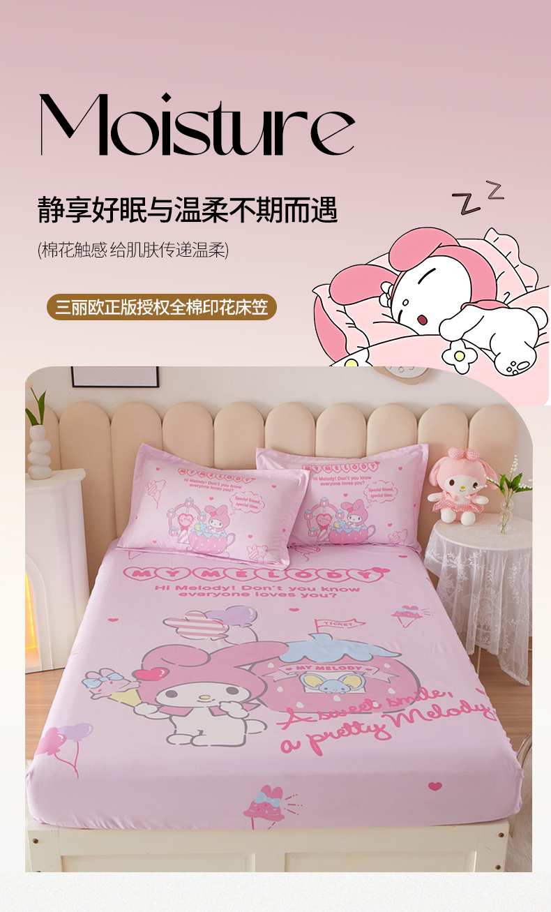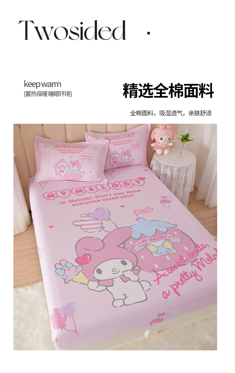 蘭菲家纺 2024新款全棉大版三丽鸥卡通单床笠 花园宝宝