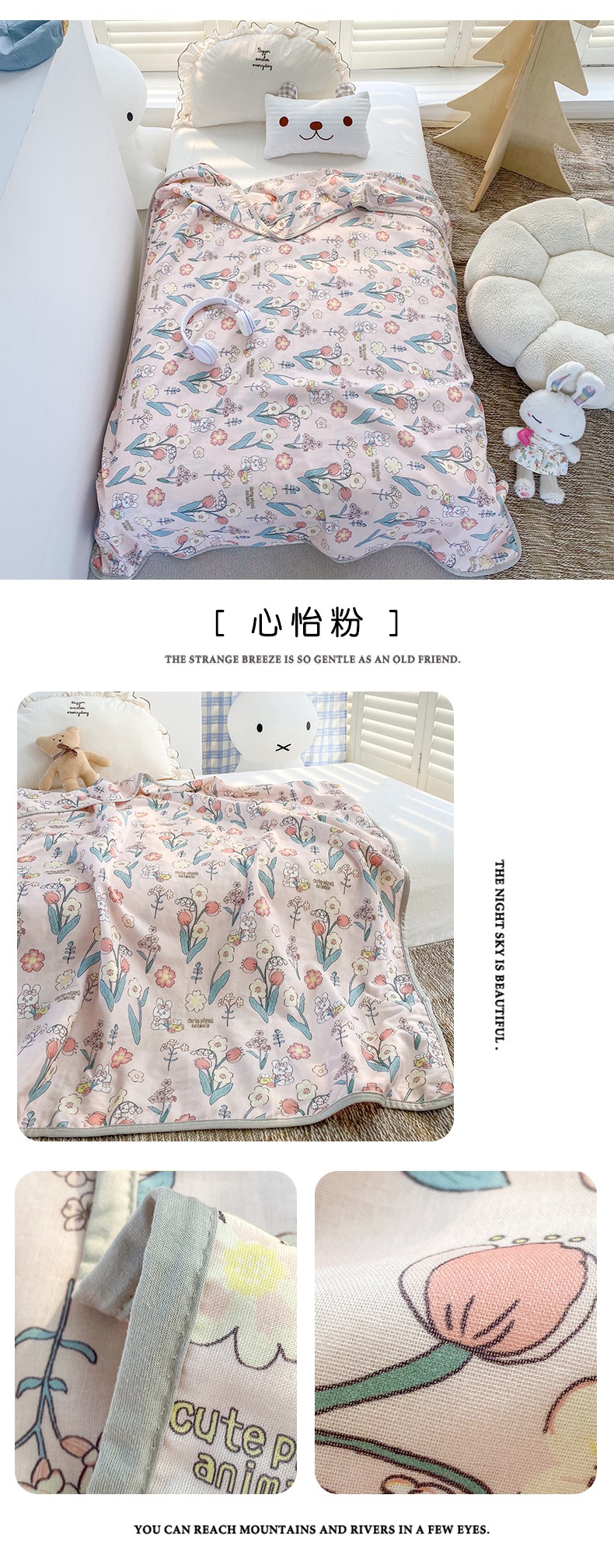 (总)潮邦 2025新款全棉双层纱多功能盖毯,白露-白,背包兔,彩虹糖,车厘子,动物派,秋之花,甜心字母,兔跳跳,兔之园,心怡粉,雨伞兔,棕熊