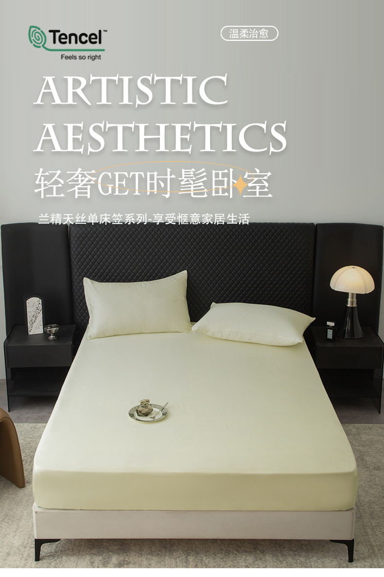 • 91家纺网 家纺一手货源 找家纺 简宜家居 2025新款60支兰精天丝单品床笠 柔肌-绵白