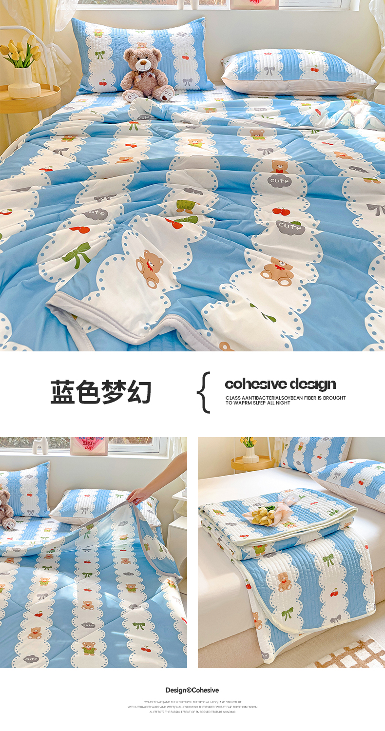 • 91家纺网 家纺一手货源 找家纺 澳梵家居 2024新款凉感丝软席软凉席床盖夏被四件套件 蓝色梦幻