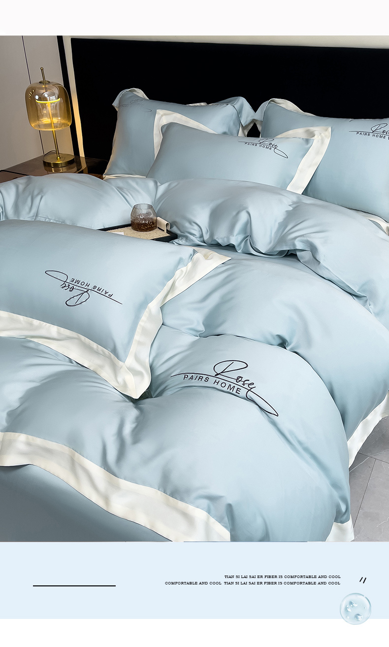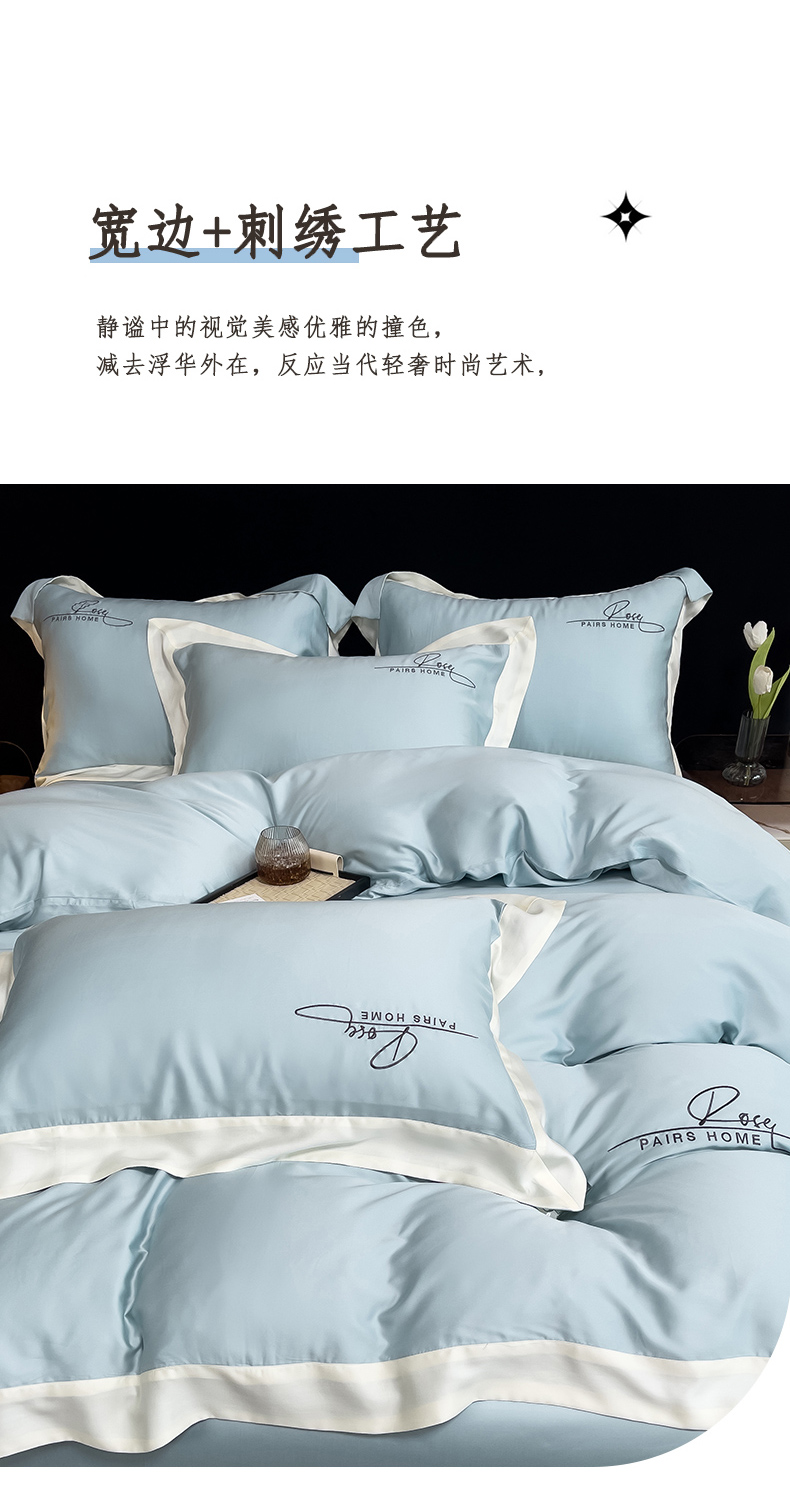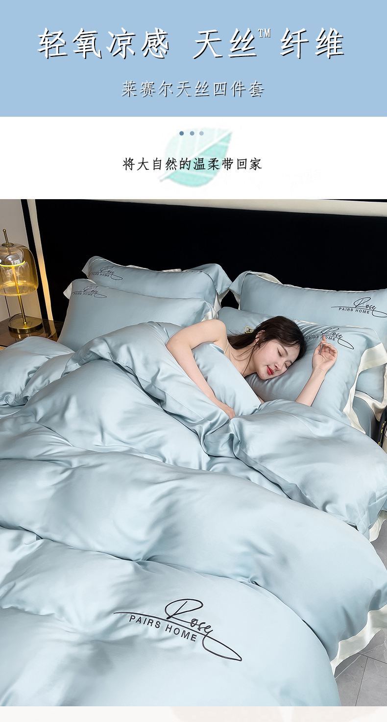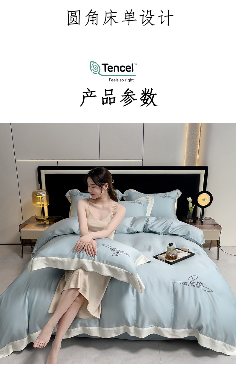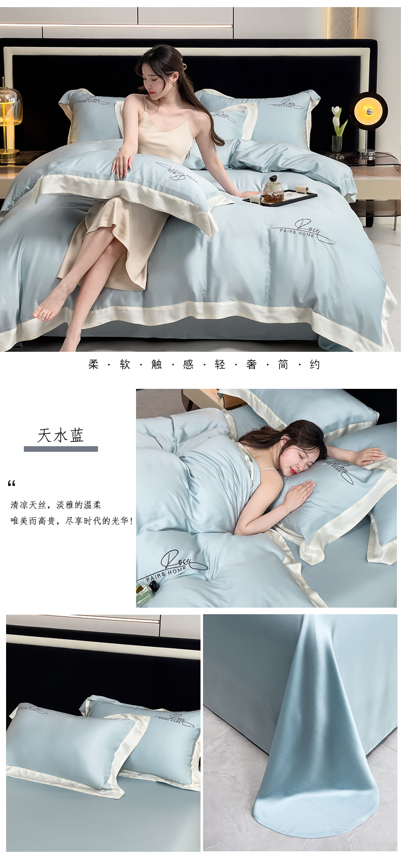 瑞驰家纺 2024新款60兰精天丝四件套-罗莎琳 天水蓝