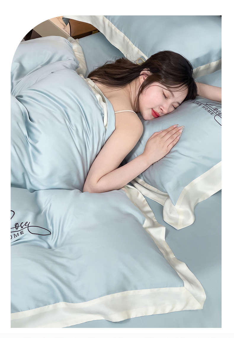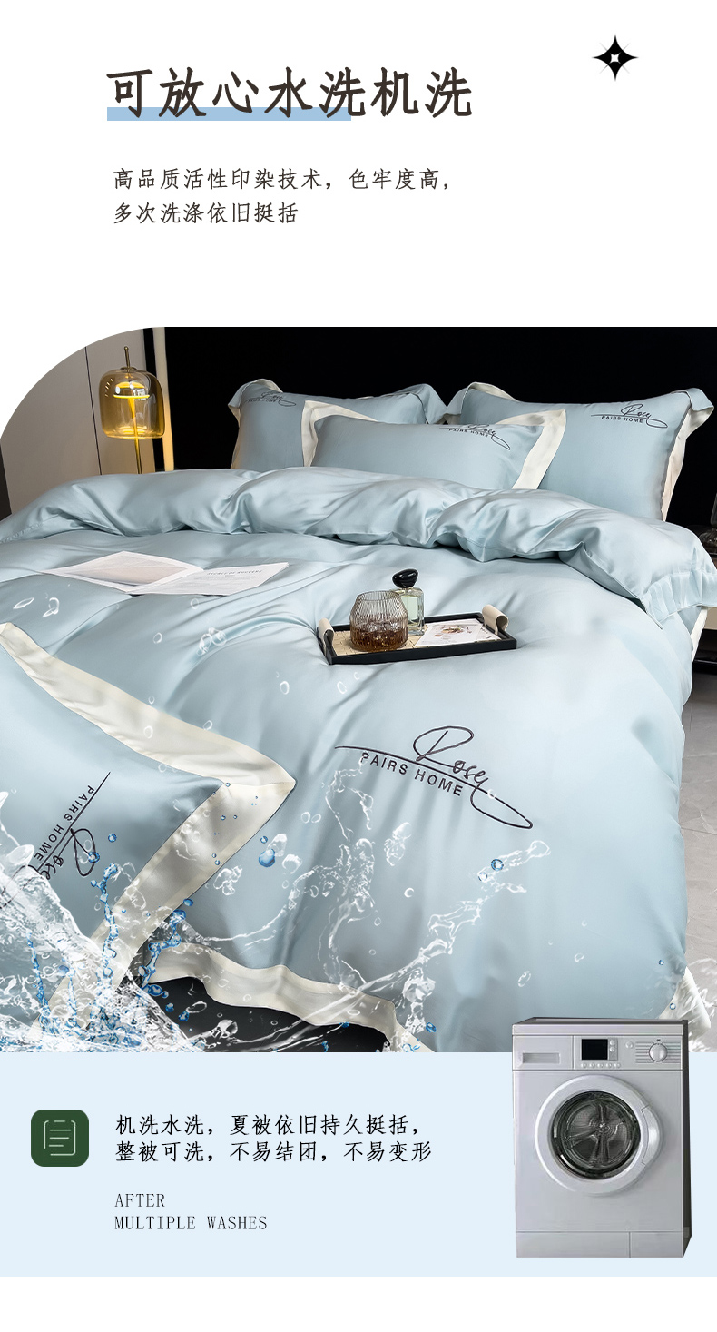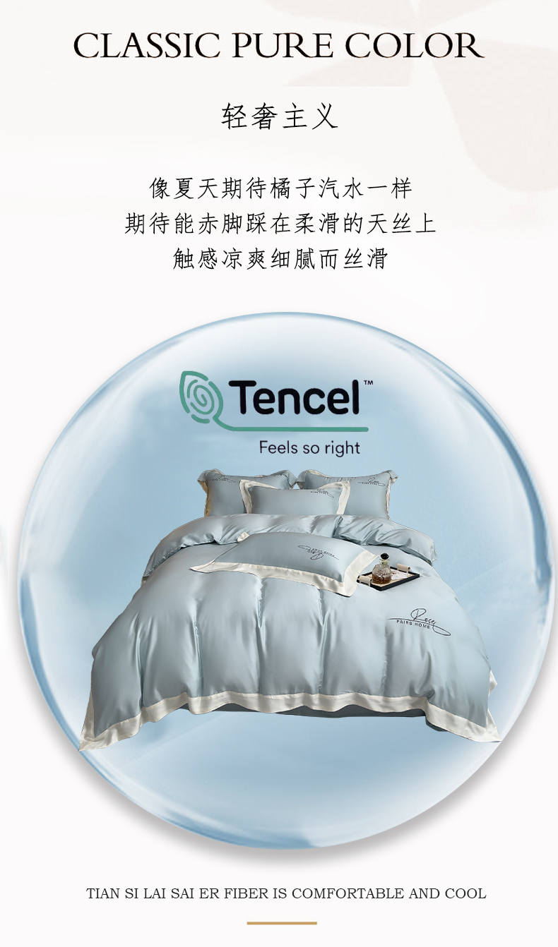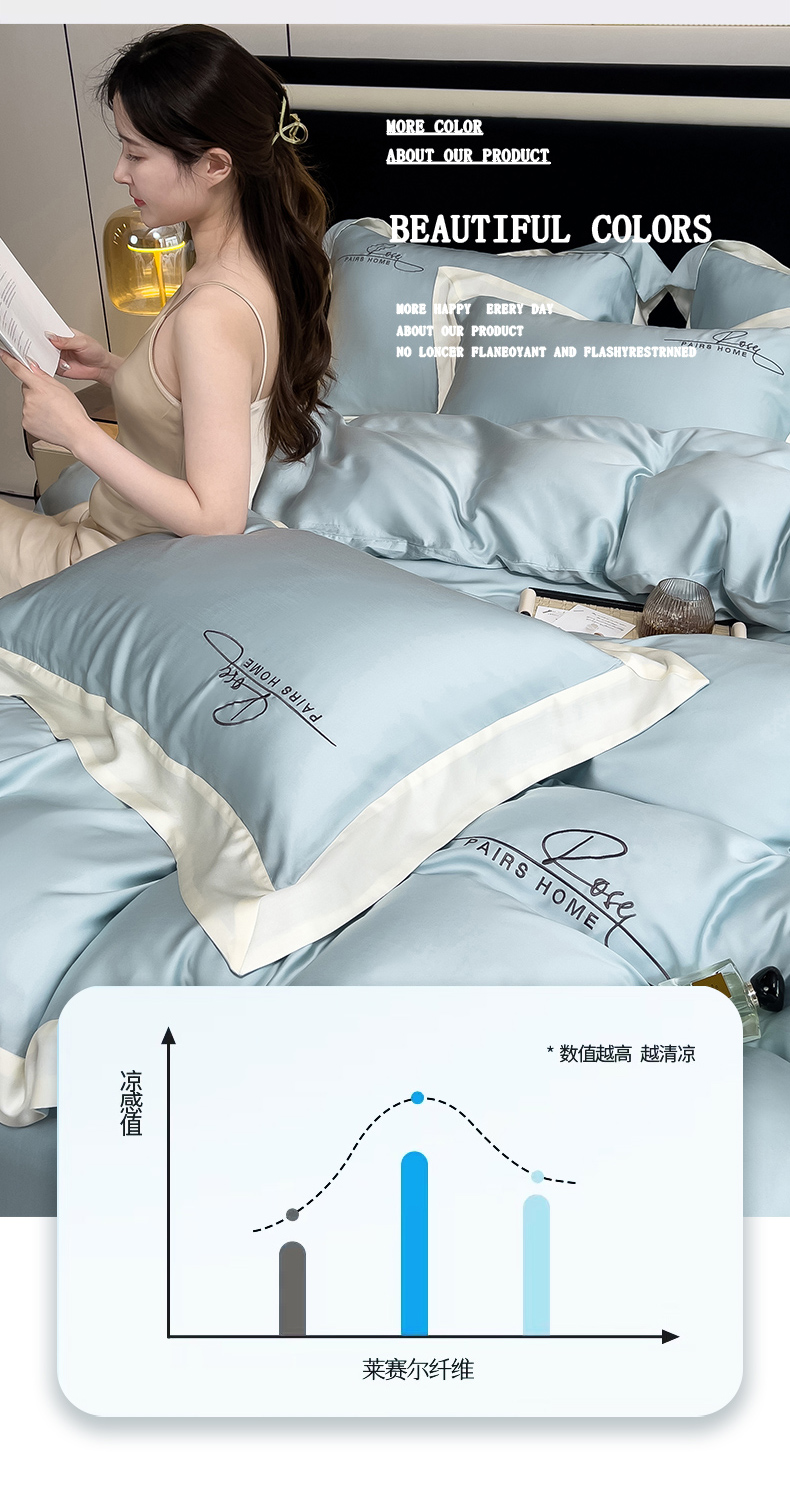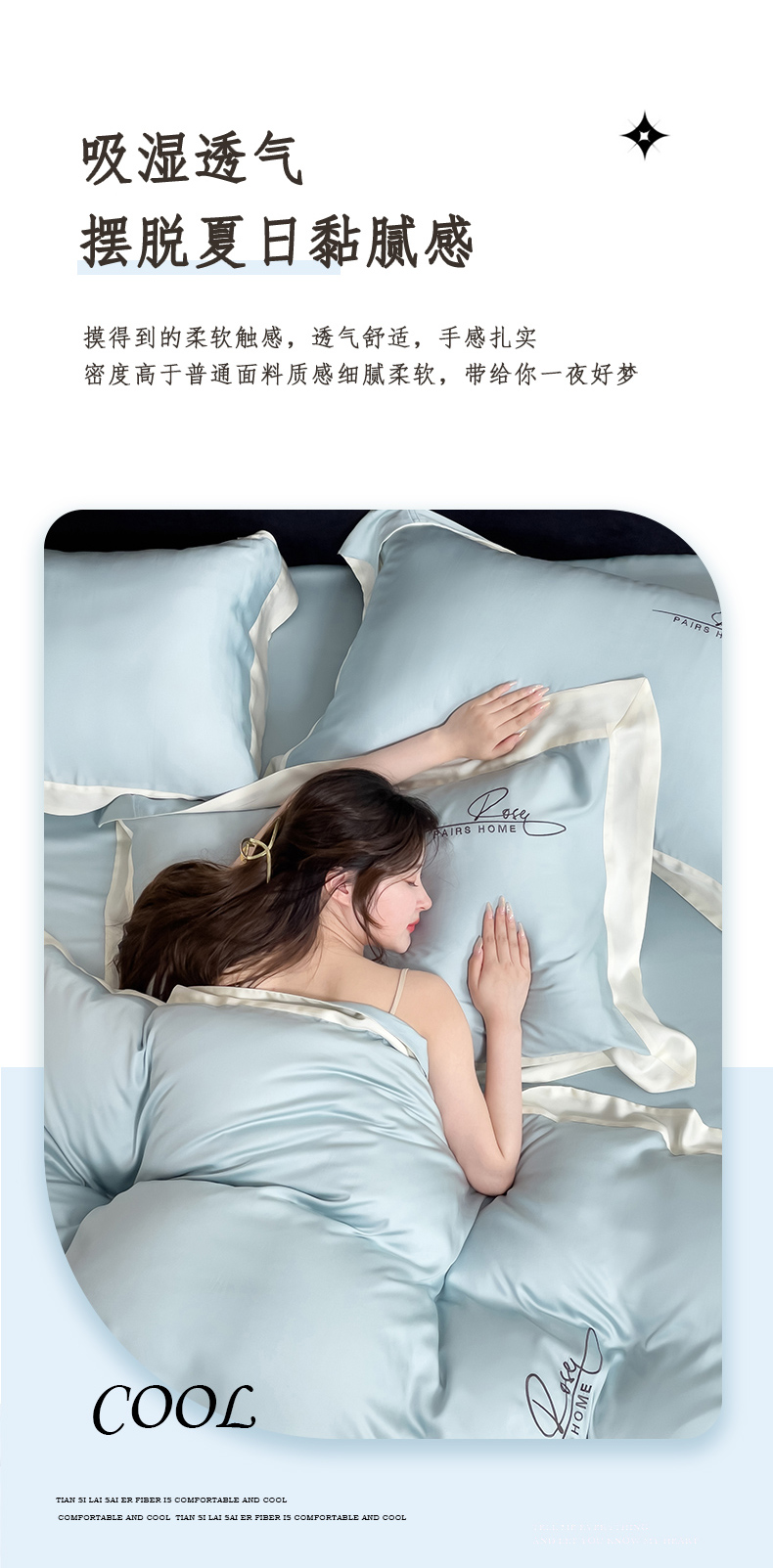 瑞驰家纺 2024新款60兰精天丝四件套-罗莎琳 天水蓝