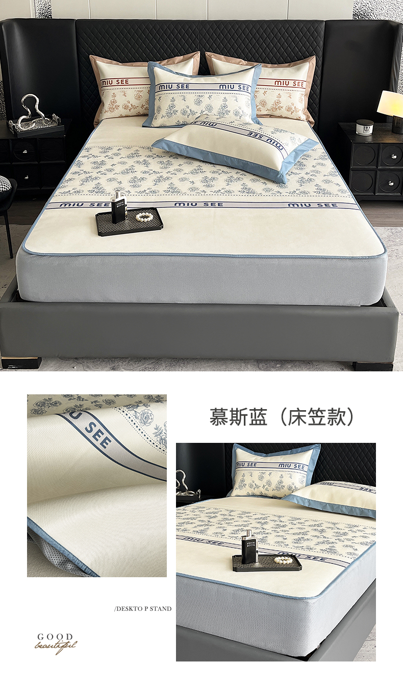 (总)三味舒屋 2025新款麦吉拉时尚印花冰藤凉席席子,麦吉拉 米 床席,麦吉拉 蓝 床席,麦吉拉蓝 床笠,麦吉拉米 床笠