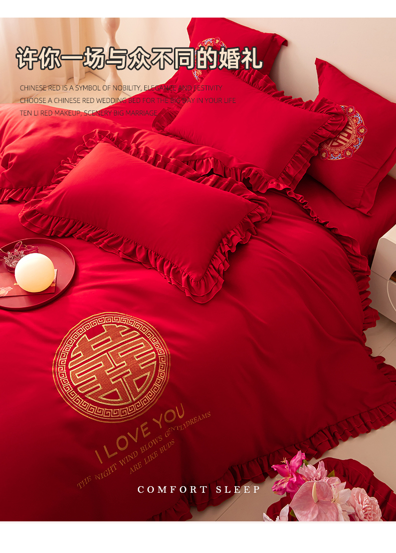 当前位置: 91家纺网 > 商品网购 > 床品套件 > 四件套 > 婚庆四件套 > 玉雅家纺 2025新款磨毛时尚花边款床裙婚庆四件套 花边款-简爱