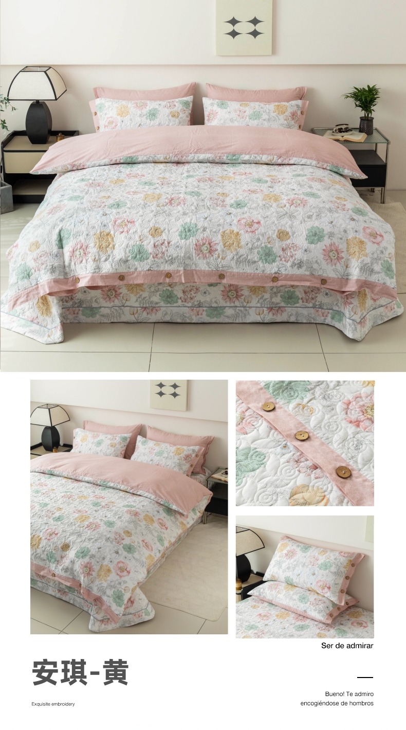 当前位置: 91家纺网 > 商品网购 > 床品套件 > 四件套 > 其它四件套 > 优乐家纺 2025新款纯棉印花夹棉系列四件套-纽扣款 安琪-黄