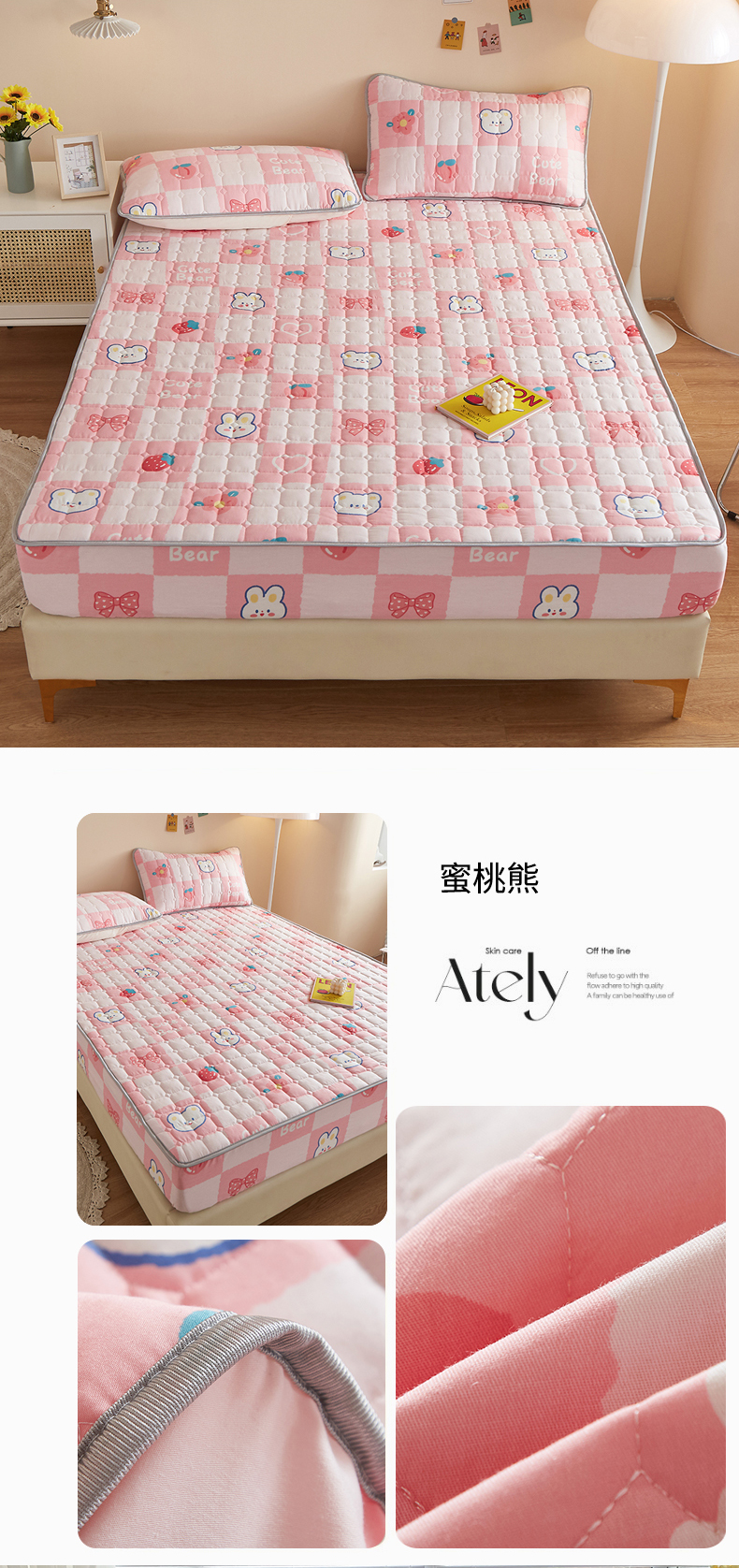 (总)富馨莱 2025新款牛奶绒夹棉床垫床盖支持一件定制,飞行太空,格子熊猫,孔雀蓝,恐龙伙伴,抹茶绿,七彩草莓,轻奢白,轻奢灰,小精灵,小柯基,樱桃兔,脏脏熊,组合图