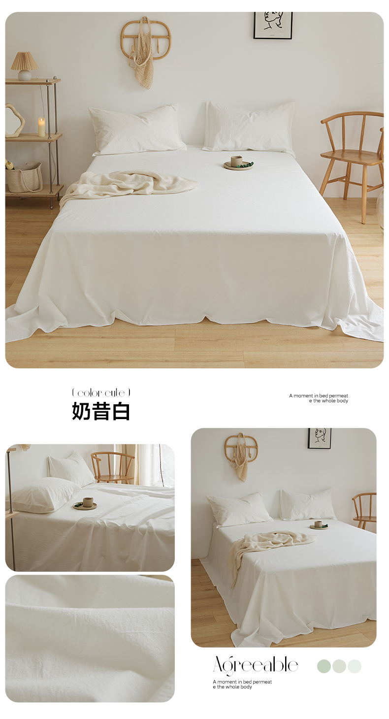 新款40支全棉水洗棉纯色单品系列-单床单 奶昔白