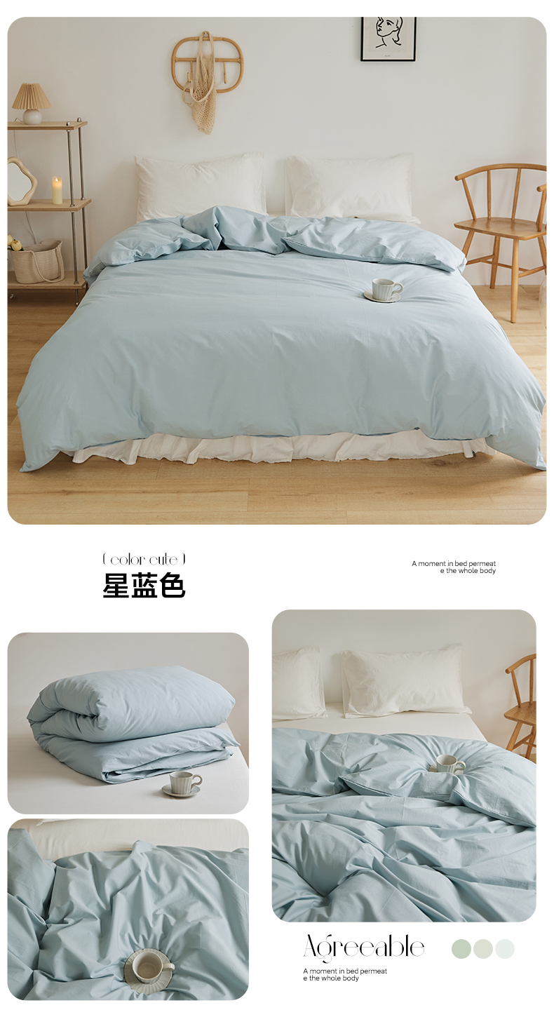 商品名称:新款40支全棉水洗棉纯色单品系列-单被套 星蓝色