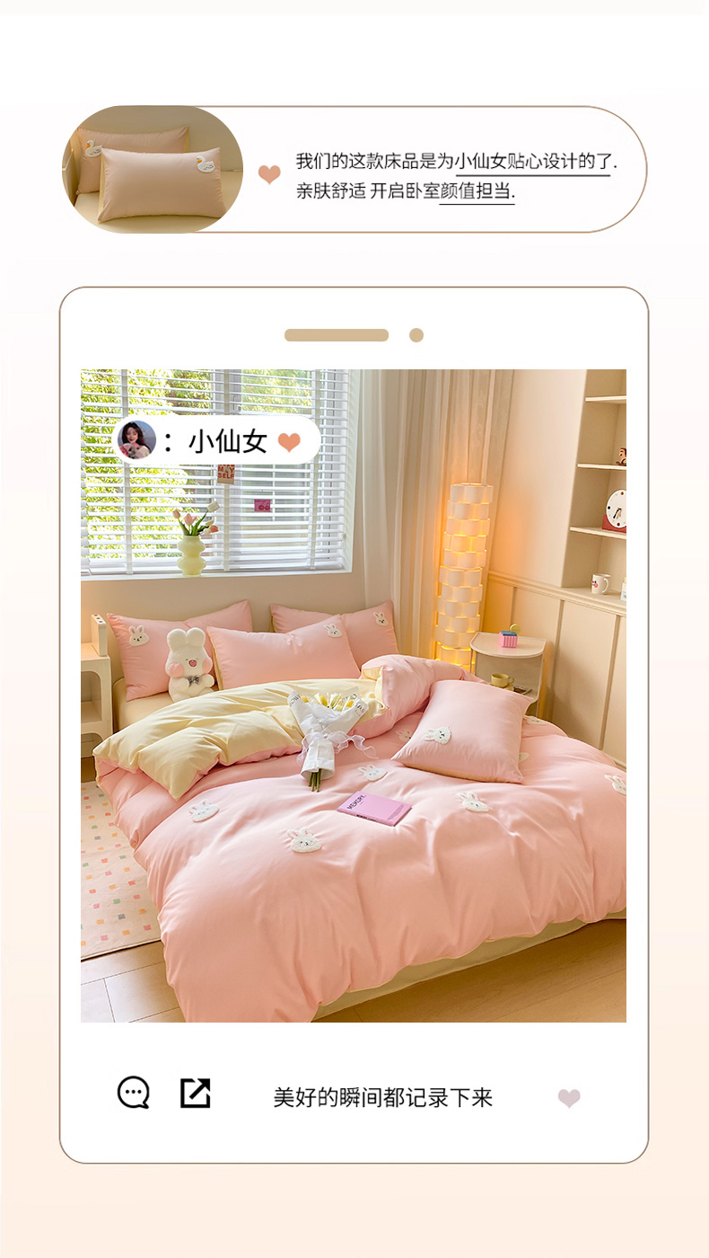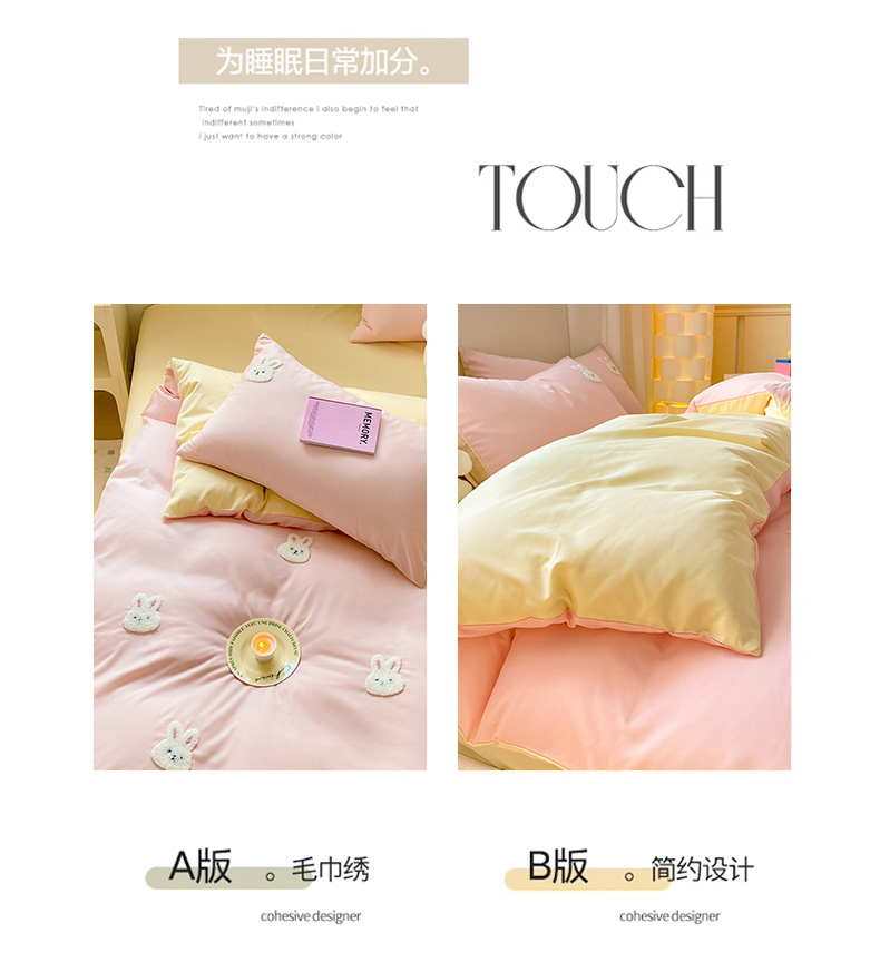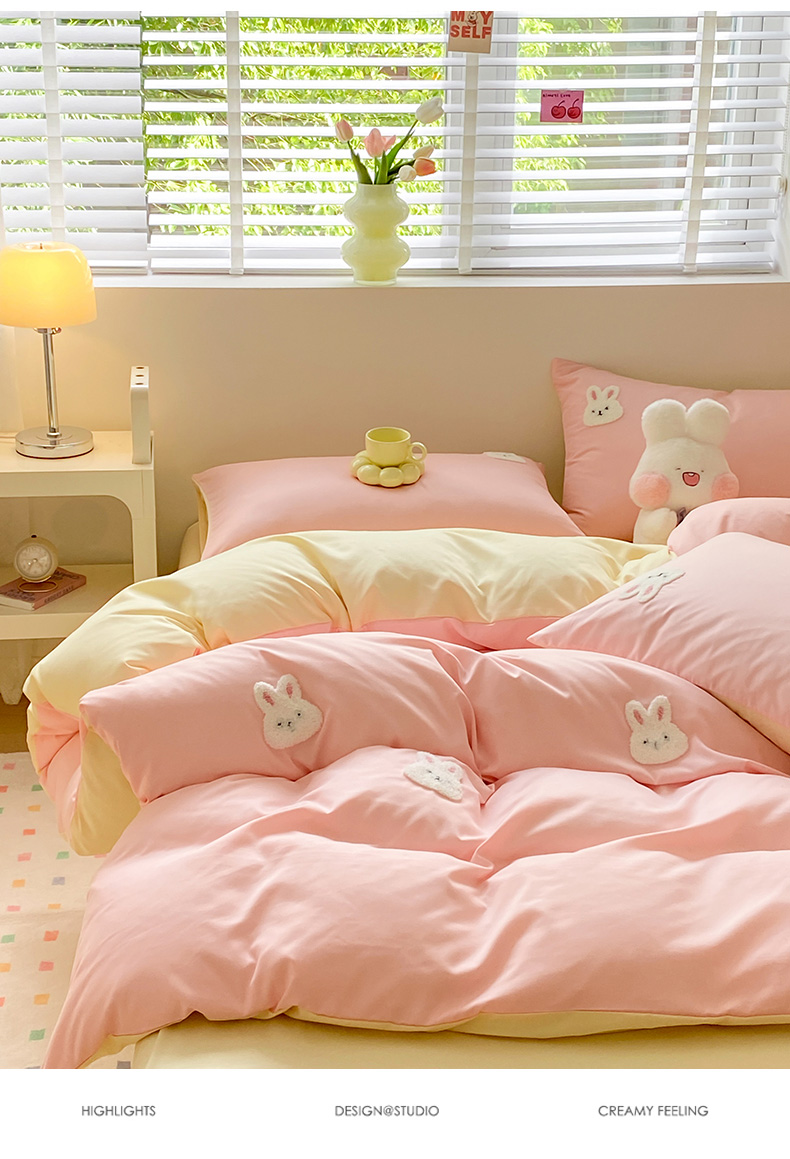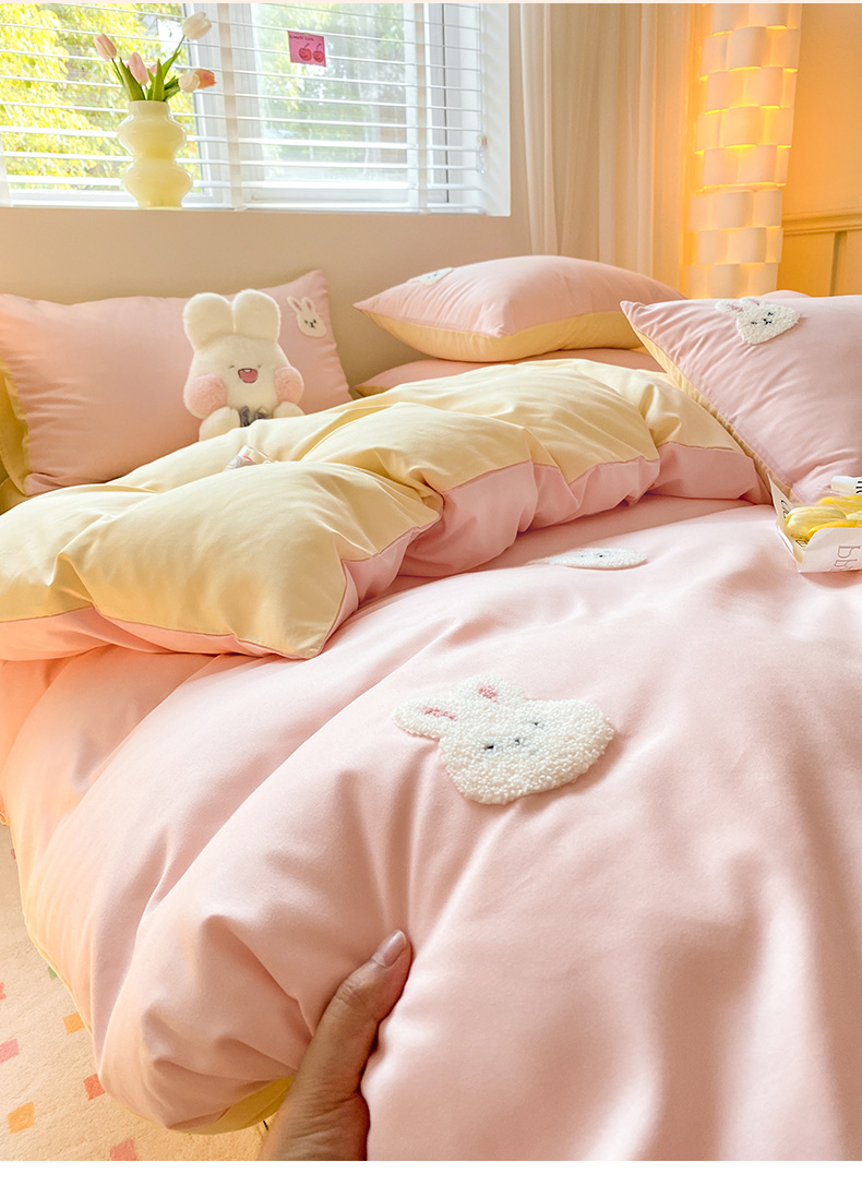 当前位置: 91家纺网 > 商品网购 > 床品套件 > 四件套 > 毛巾绣四件套 > 眠帛 2024新款亲肤棉卡通毛巾绣四件套 兔兔-奶油粉奶黄