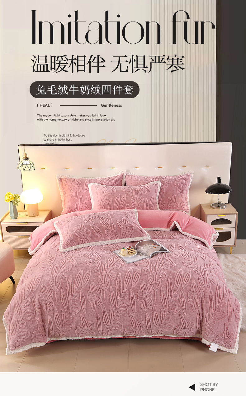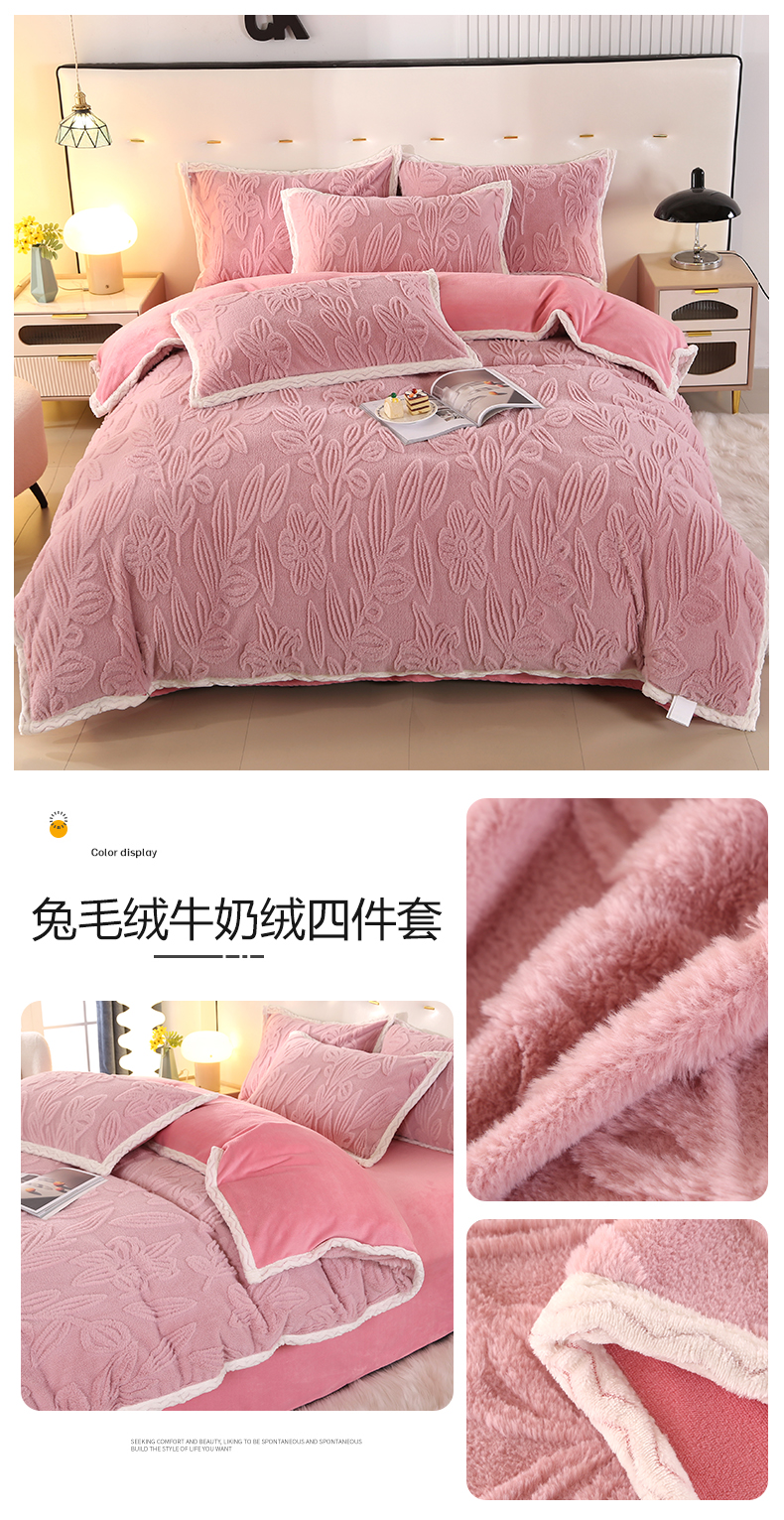 商品名称:芸锦豪2024新款花团雕花兔毛绒兔兔绒四件套 粉色
