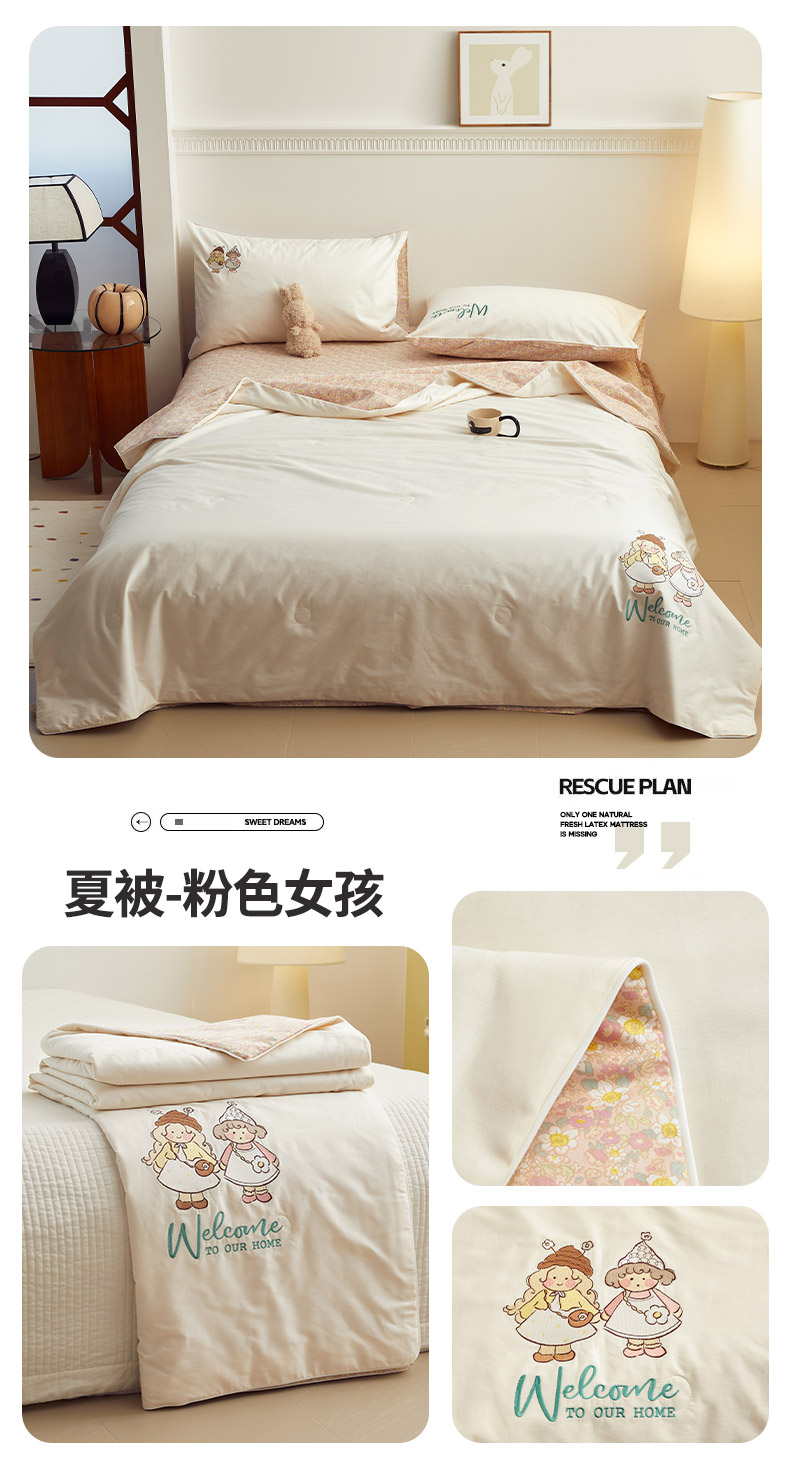 怡家居 2024新款全棉印加绣夏被 夏被-粉色女孩