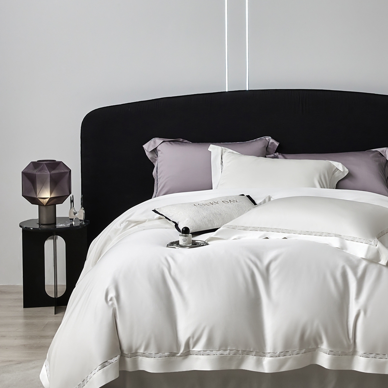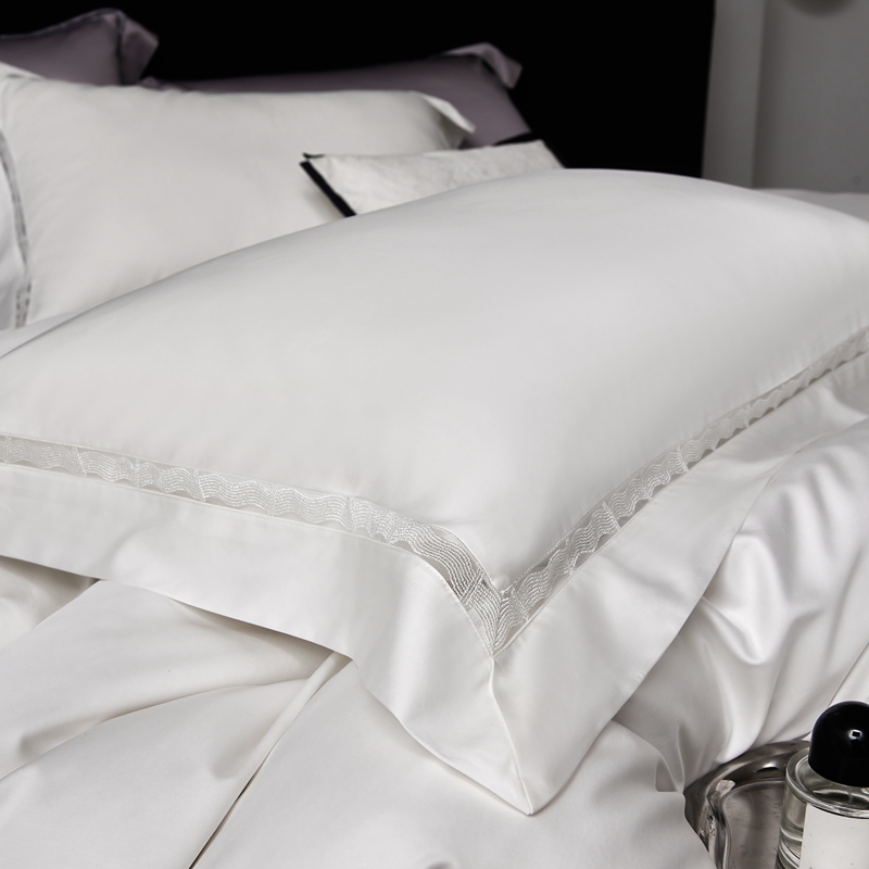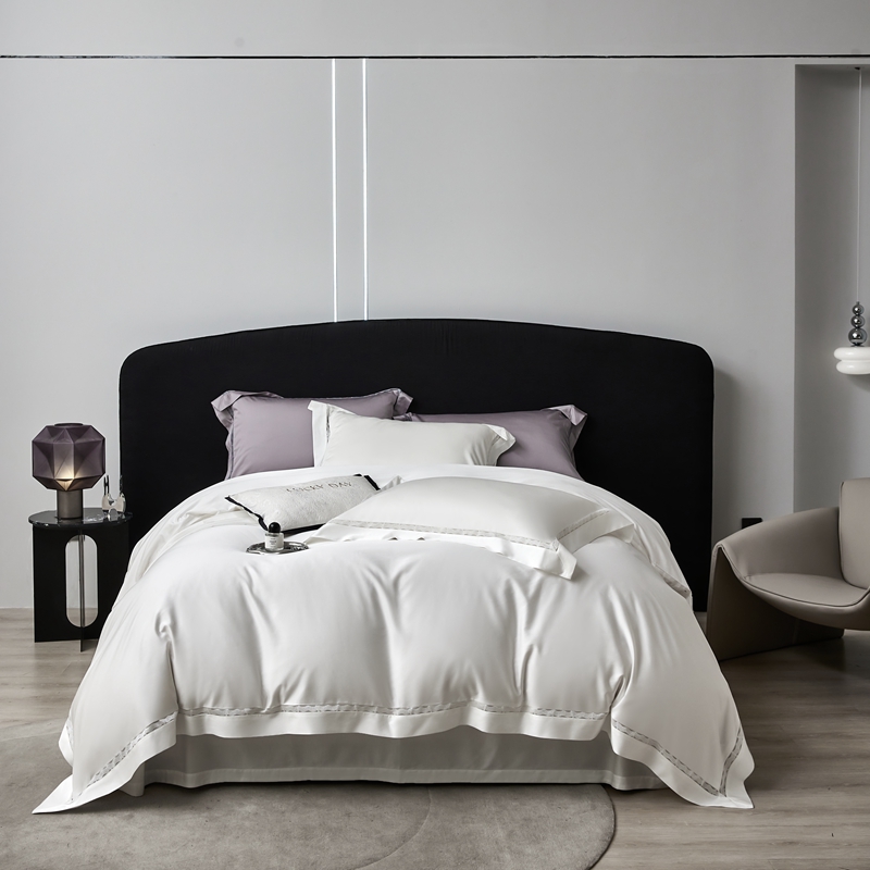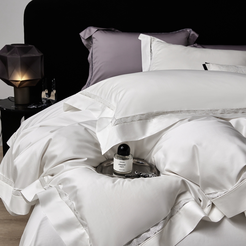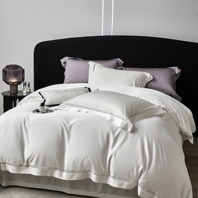 总榻尚家居 2023新款格瑞斯系列100贡缎长绒棉四件套工艺款四件套,格瑞斯紫,格瑞斯白,格瑞斯灰,格瑞斯蓝