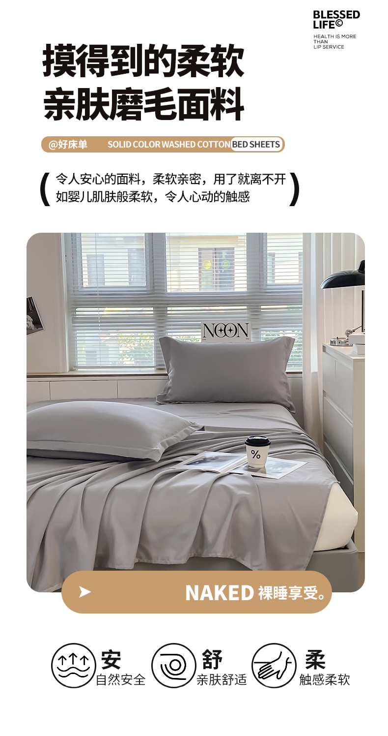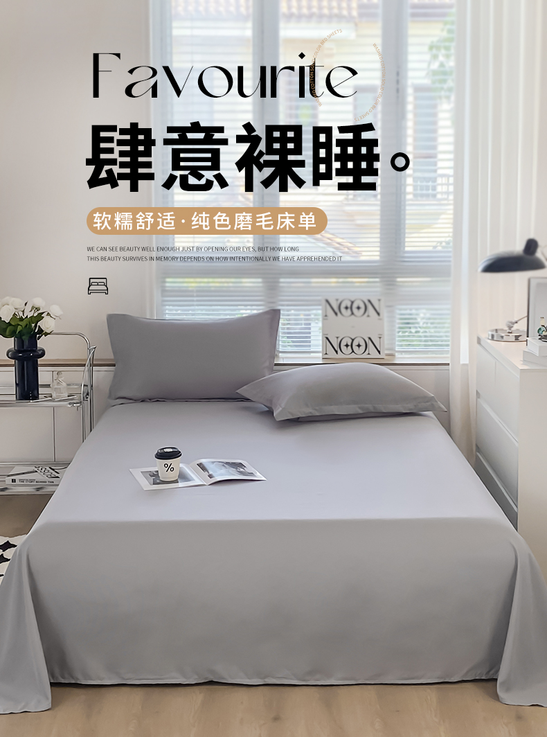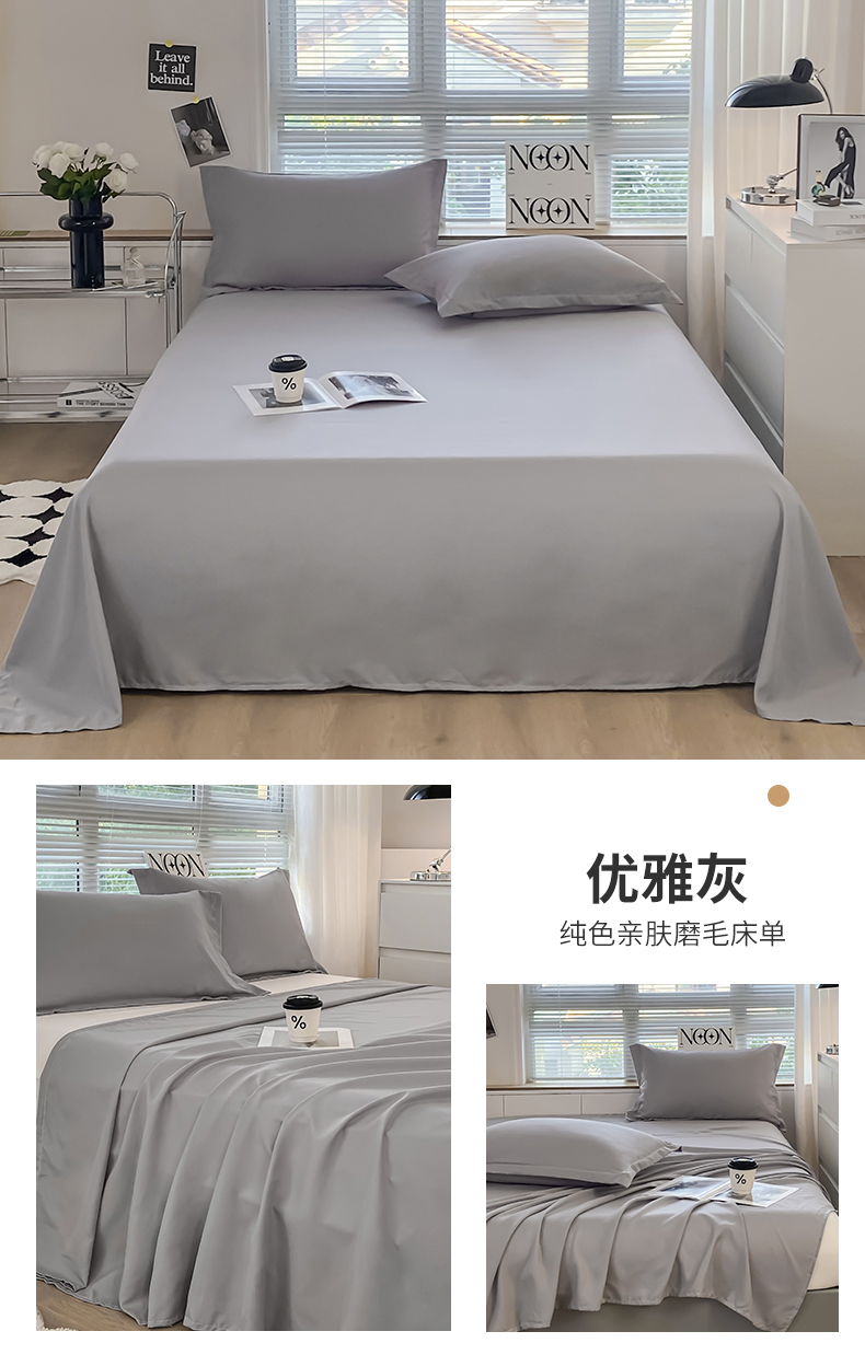恬澳家纺 2024新款亲肤磨毛纯色床单 优雅灰