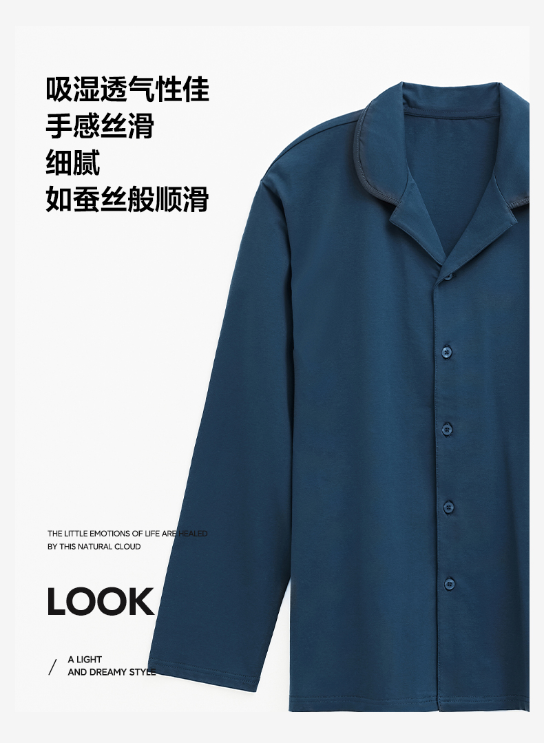 商品名称:EH 2024新款全棉男女情侣款家居服-男女款翻领 男款云兰色