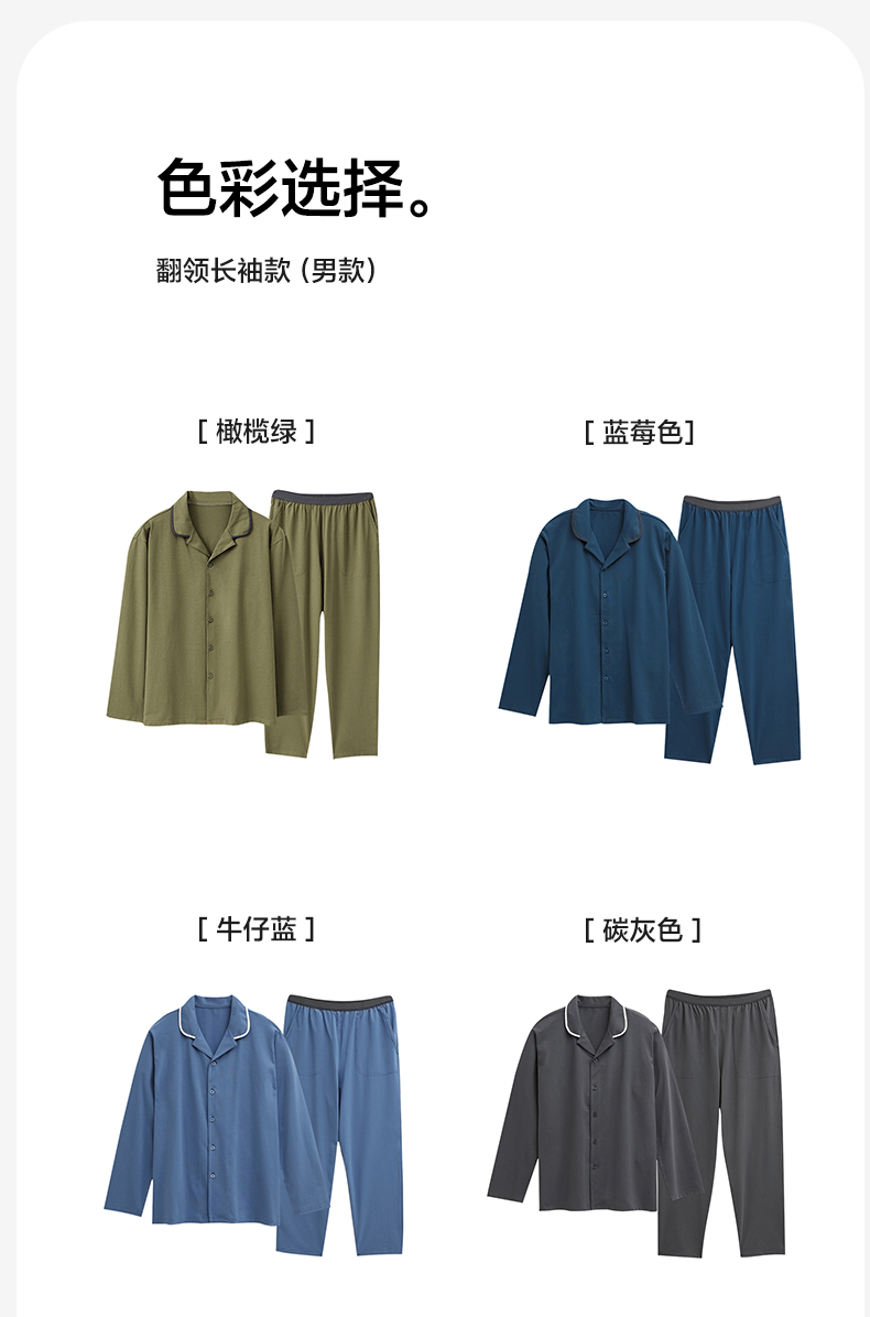 商品名称:EH 2024新款全棉男女情侣款家居服-男款翻领 云兰色