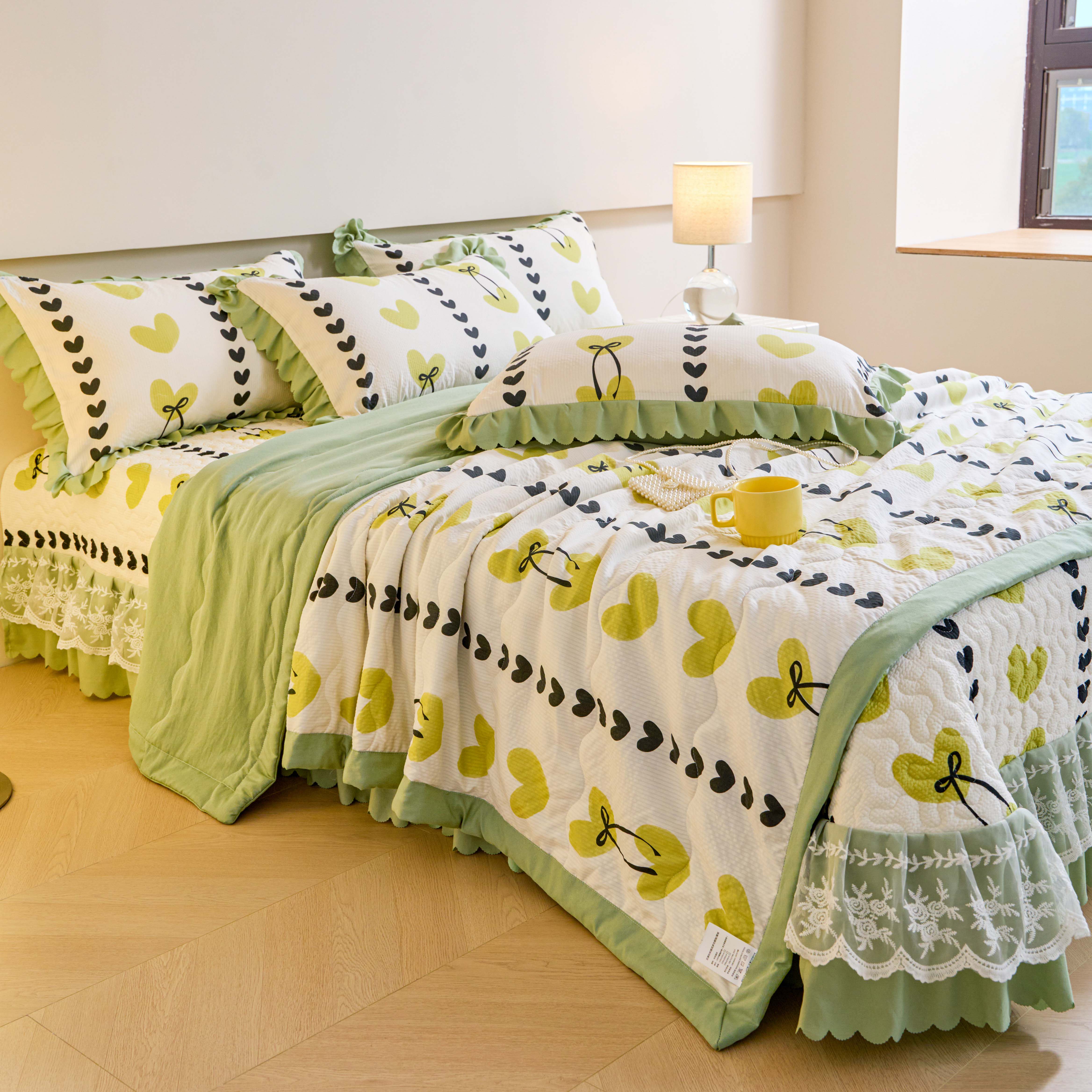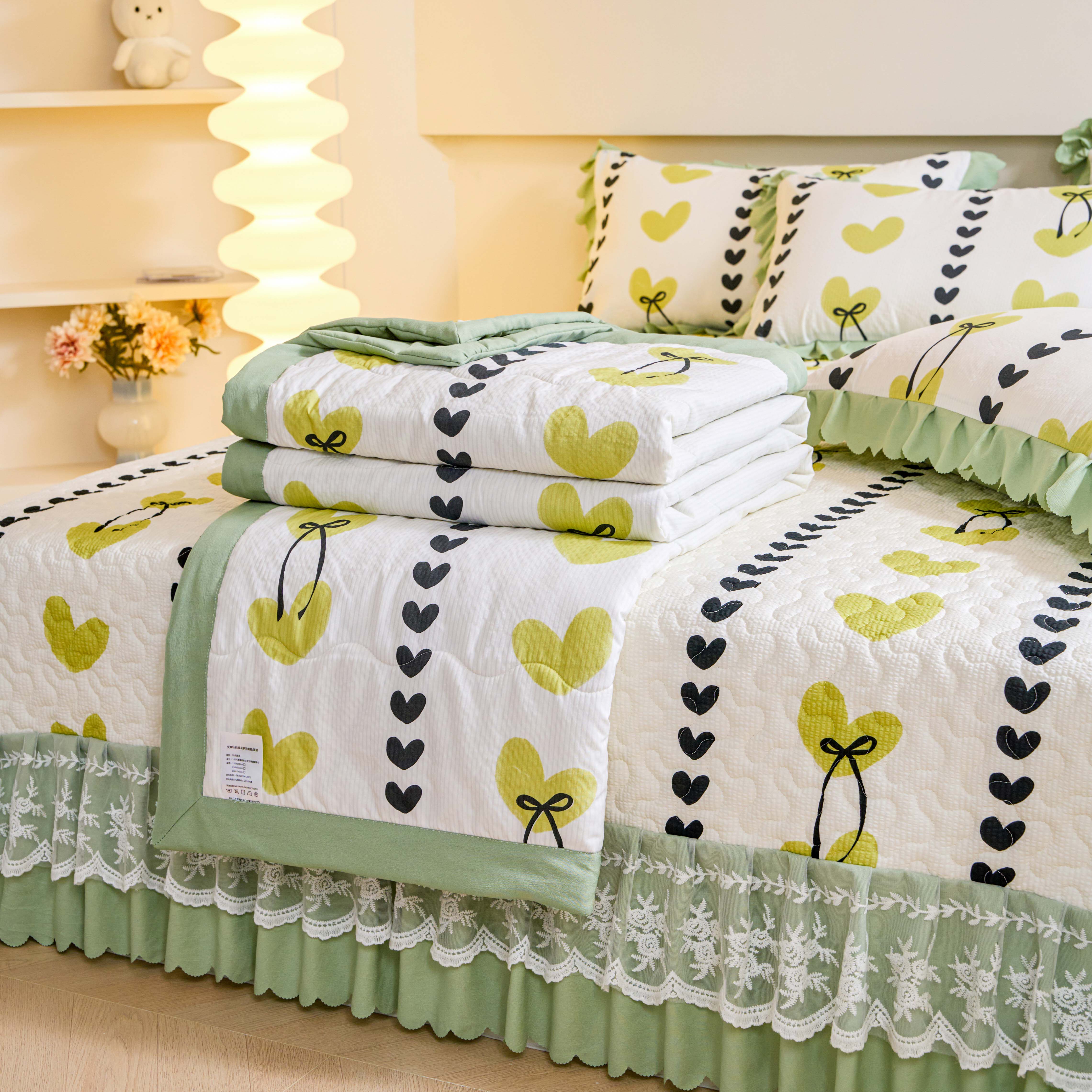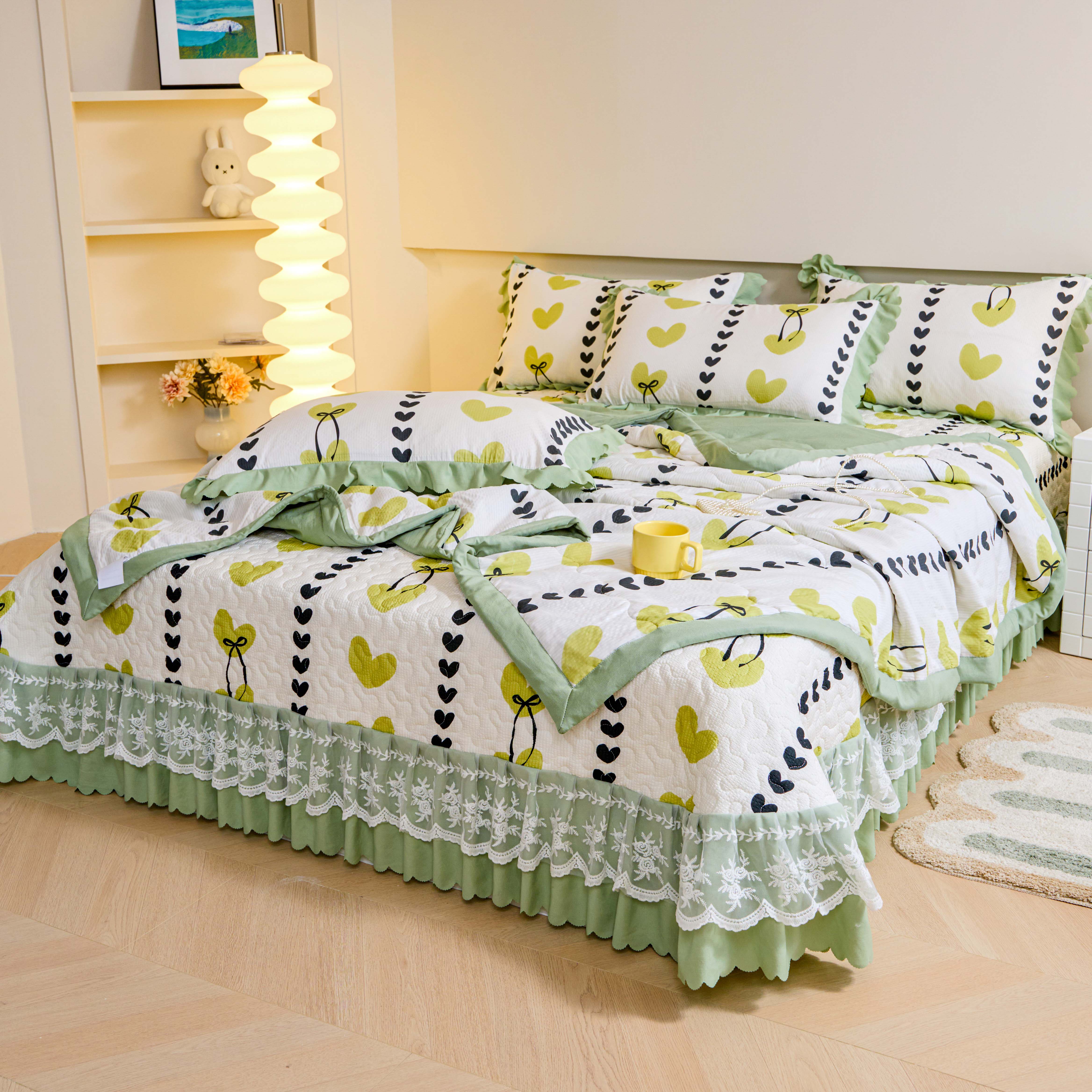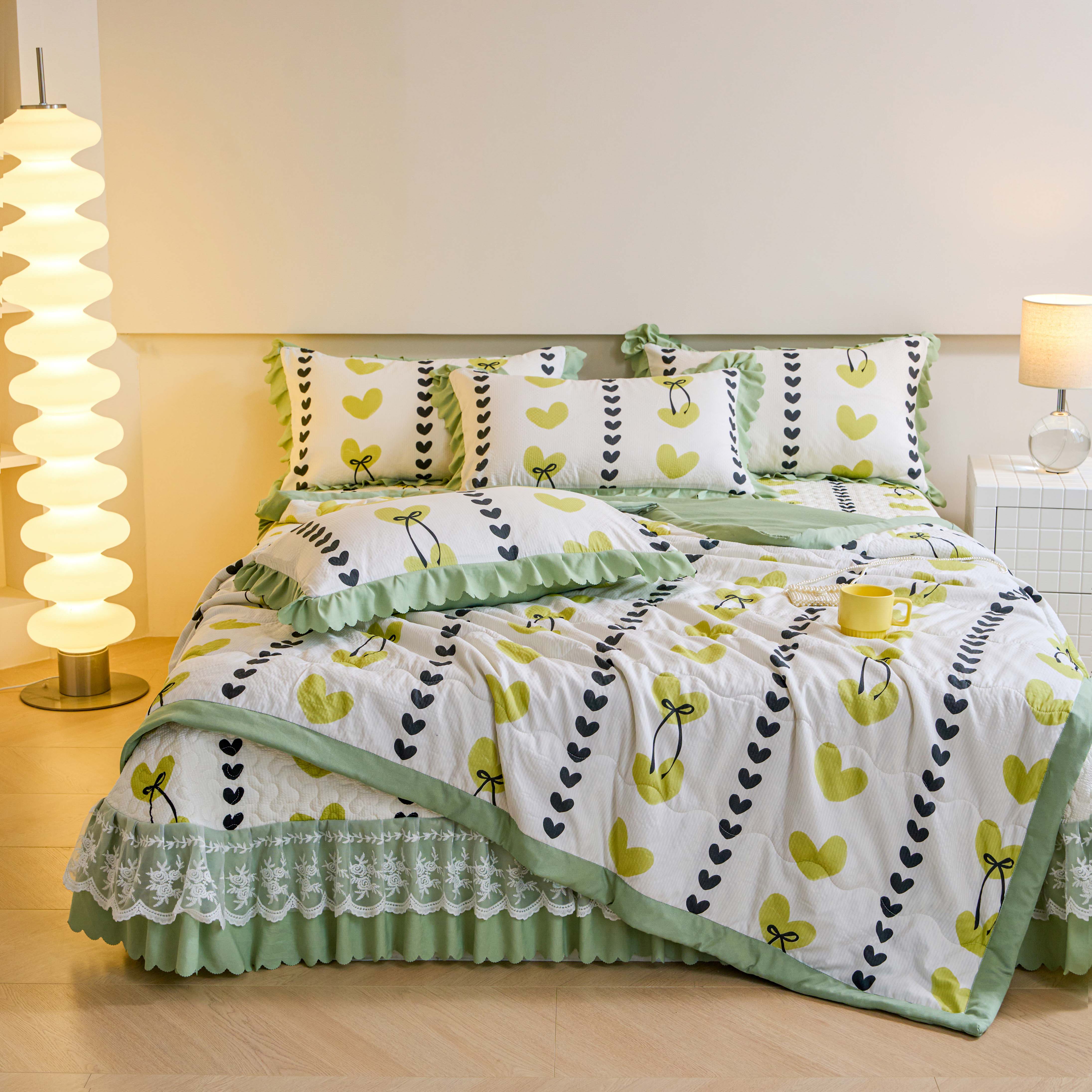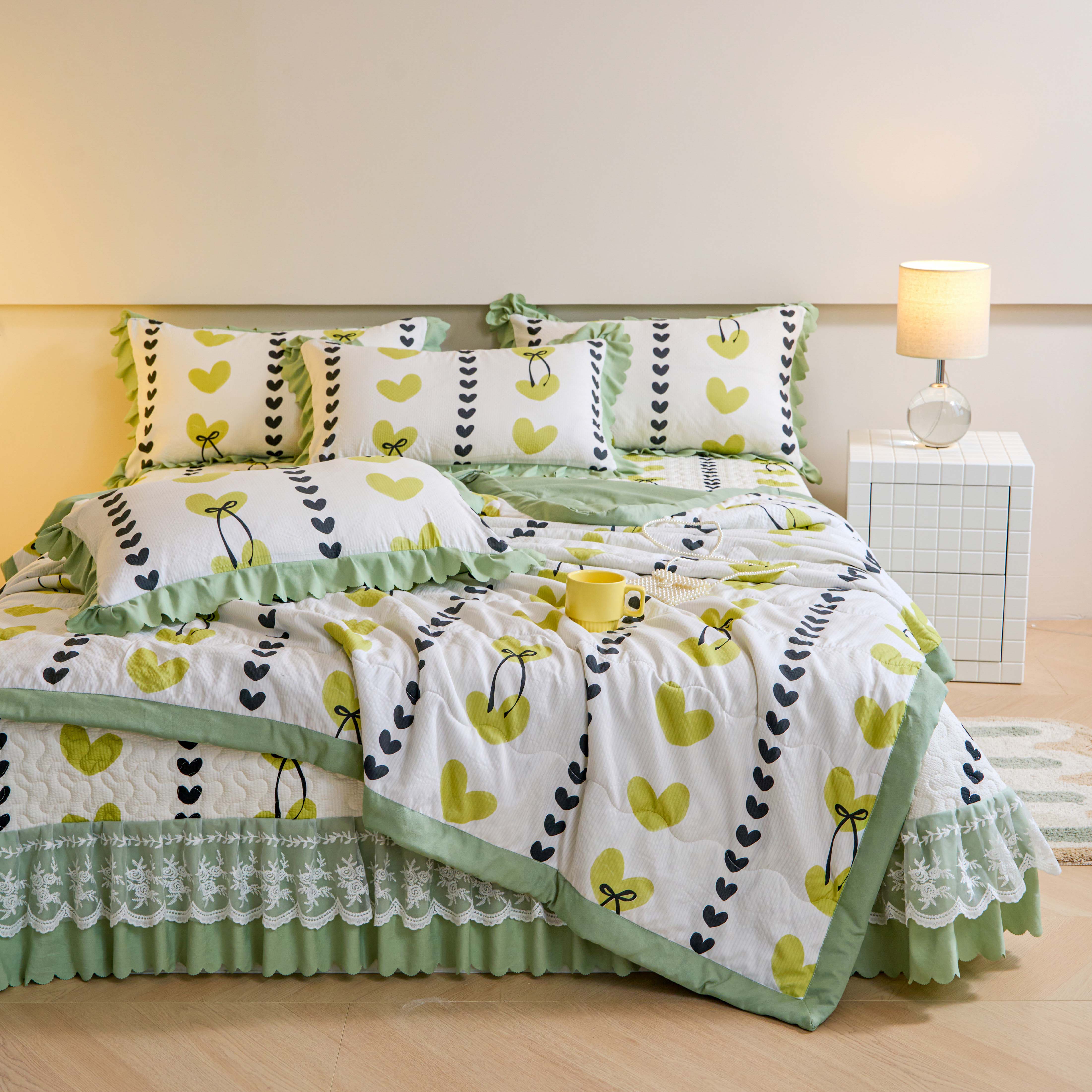 美莱家纺 2024新款软糯泡泡棉蕾丝床盖床盖四件套单品系列-床盖夏被四件套 春风里