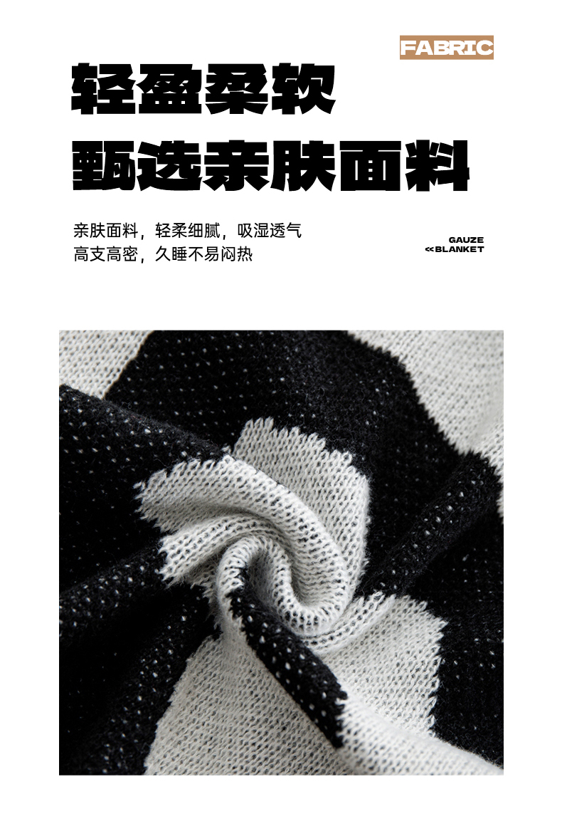 (总)苏艺针织盖毯 2024新款针织斑马纹半边绒毛毯,白咖斑马纹,黑白斑马纹,黑咖斑马纹