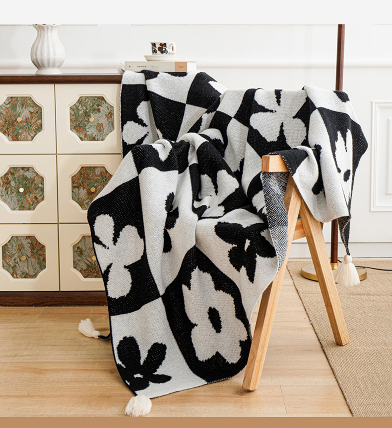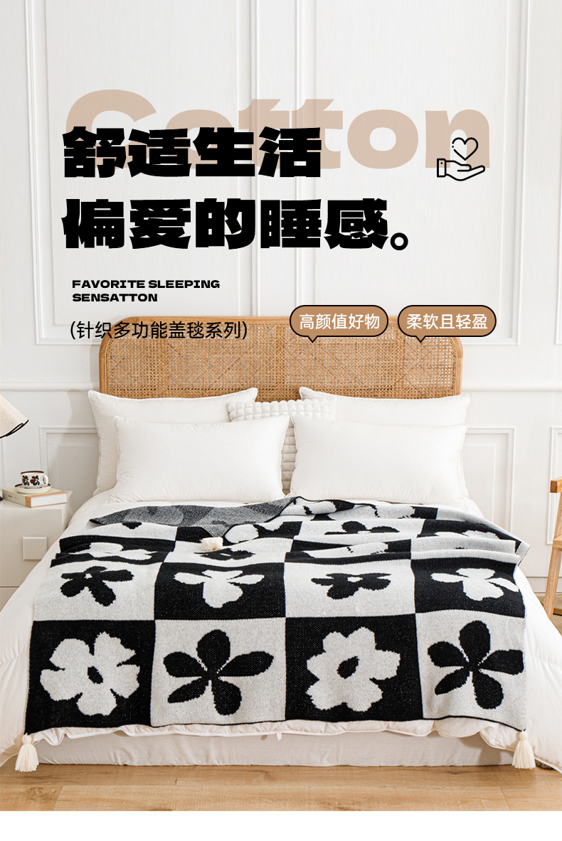 商品名称:苏艺针织盖毯 2024新款针织披肩沙发盖毯 针织-落花