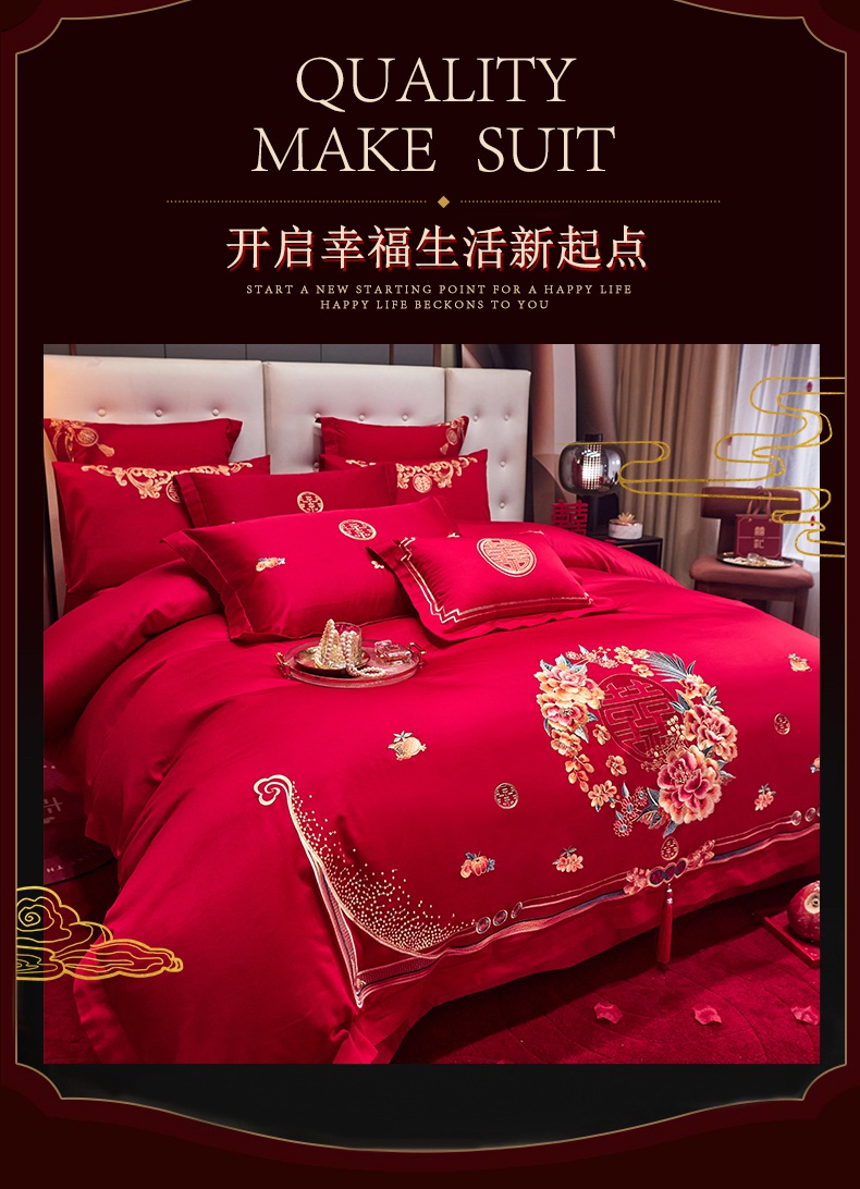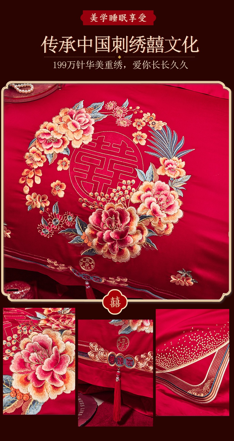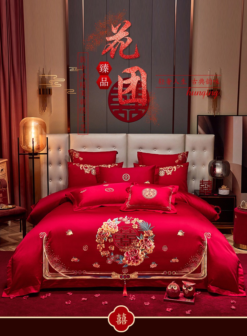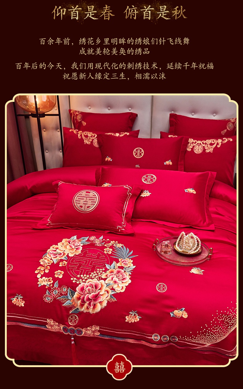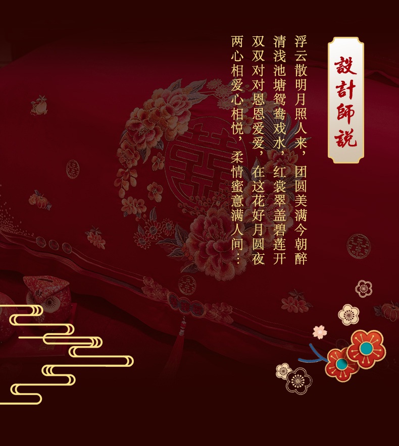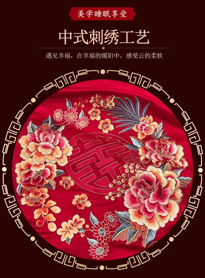 当前位置: 91家纺网 > 商品网购 > 床品套件 > 四件套 > 婚庆四件套 > 2024新款长绒棉新中式精美刺绣婚庆四件套 花团