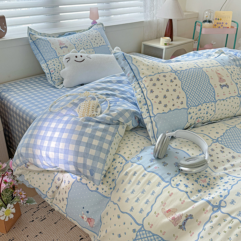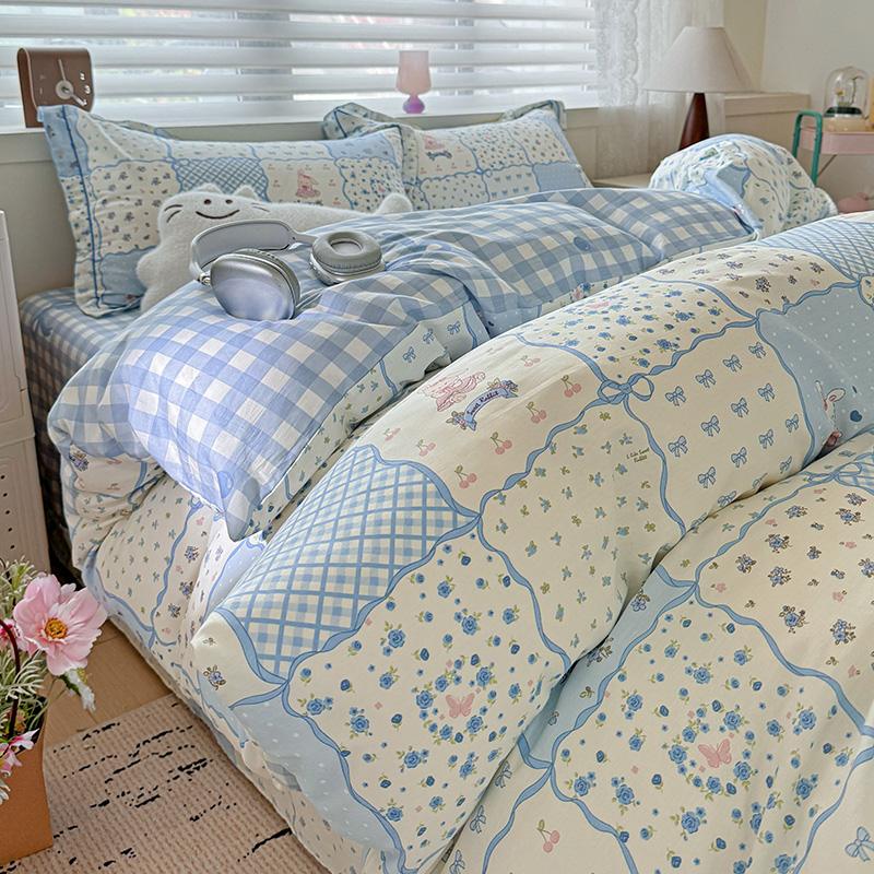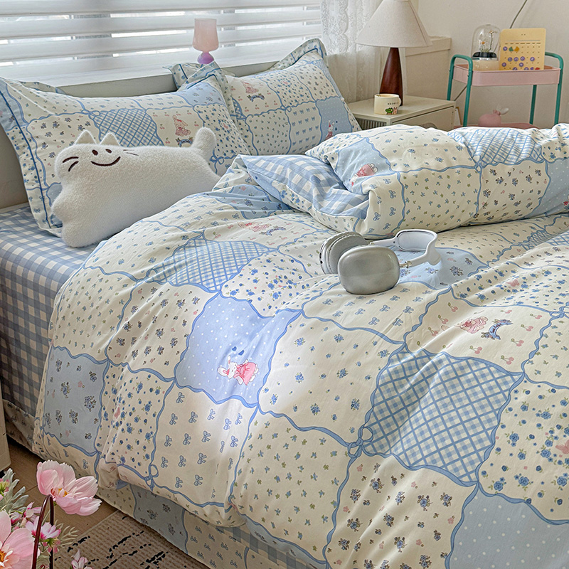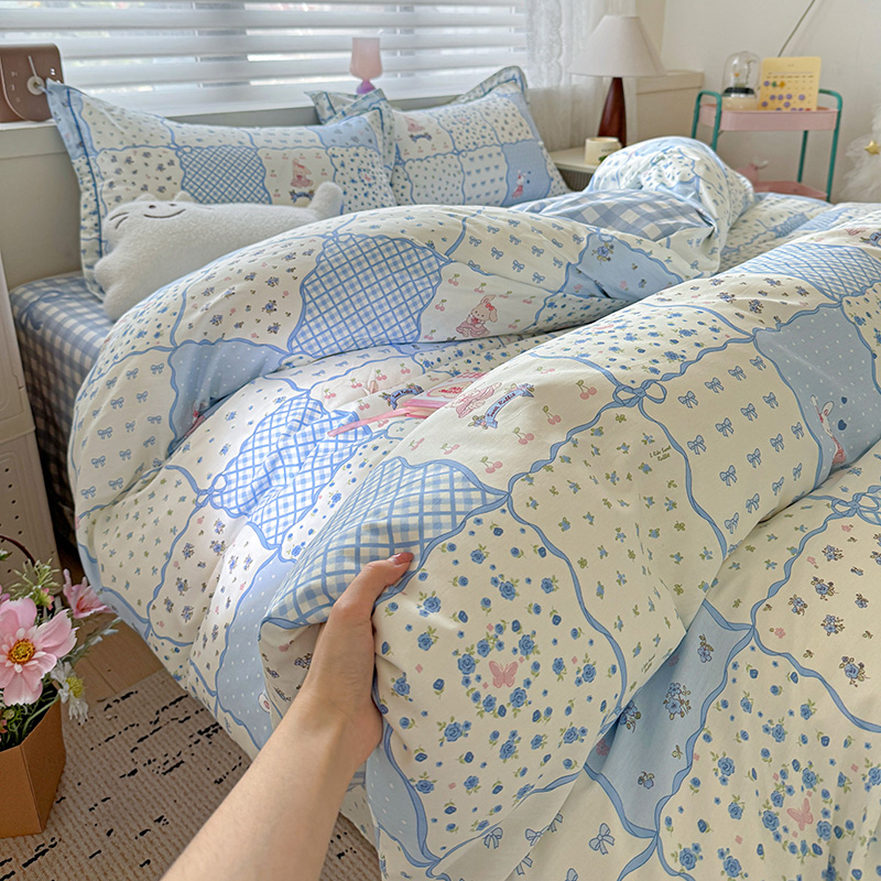 (总)乐童家纺 2026新款全棉纯棉拼接花边小清新工艺款四件套,彩虹木马,春日小兔,花田兔兔,凯莉梦境,口袋故事,浪花轻歌,毛线彩虹,梦境手账,千禧少女咖,少女日记,心跳瞬间