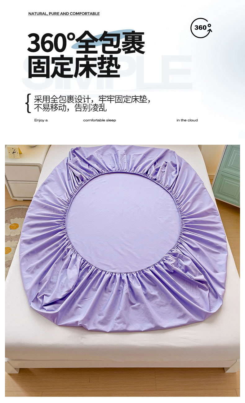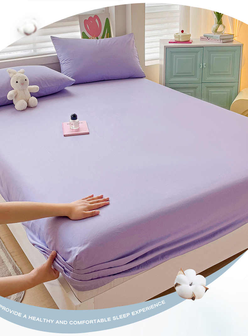 • 91家纺网 家纺一手货源 找家纺 2024新款纯色全棉简约床笠 风铃紫