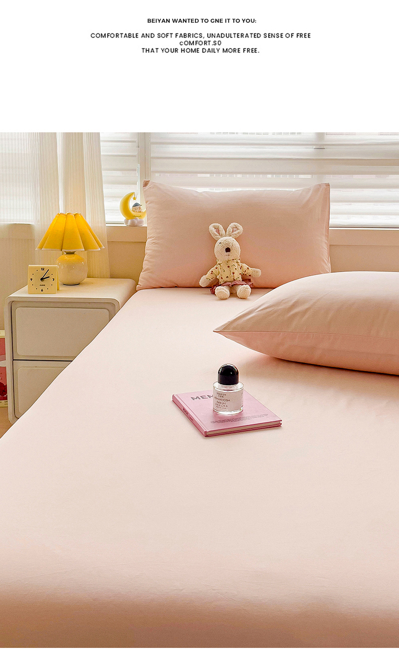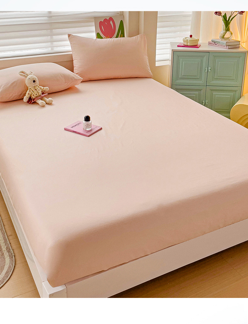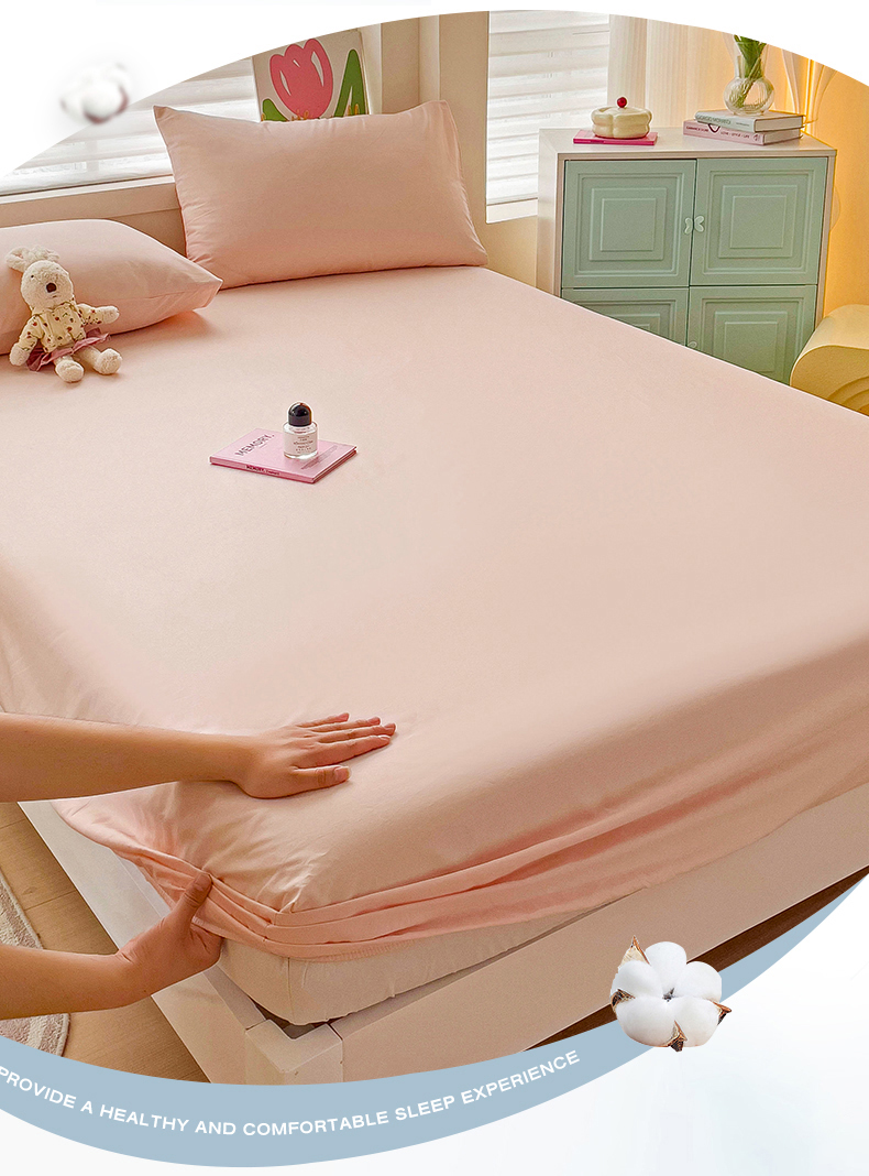 • 91家纺网 家纺一手货源 找家纺 2024新款纯色全棉简约床笠 荷塘玉