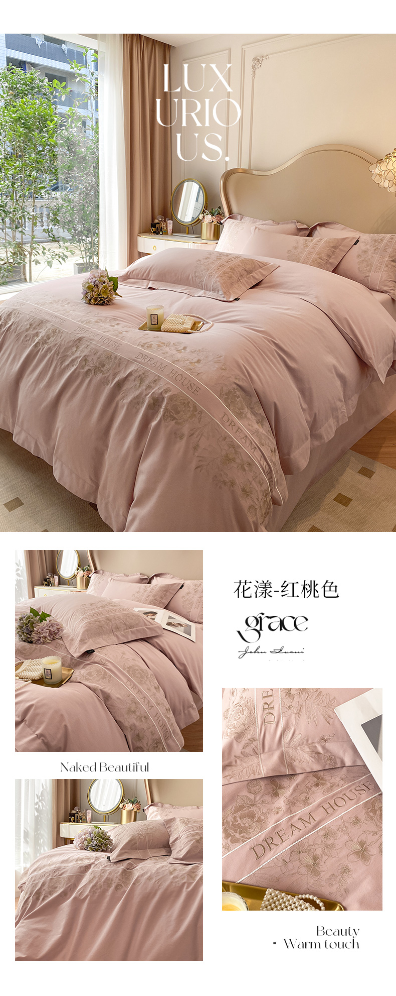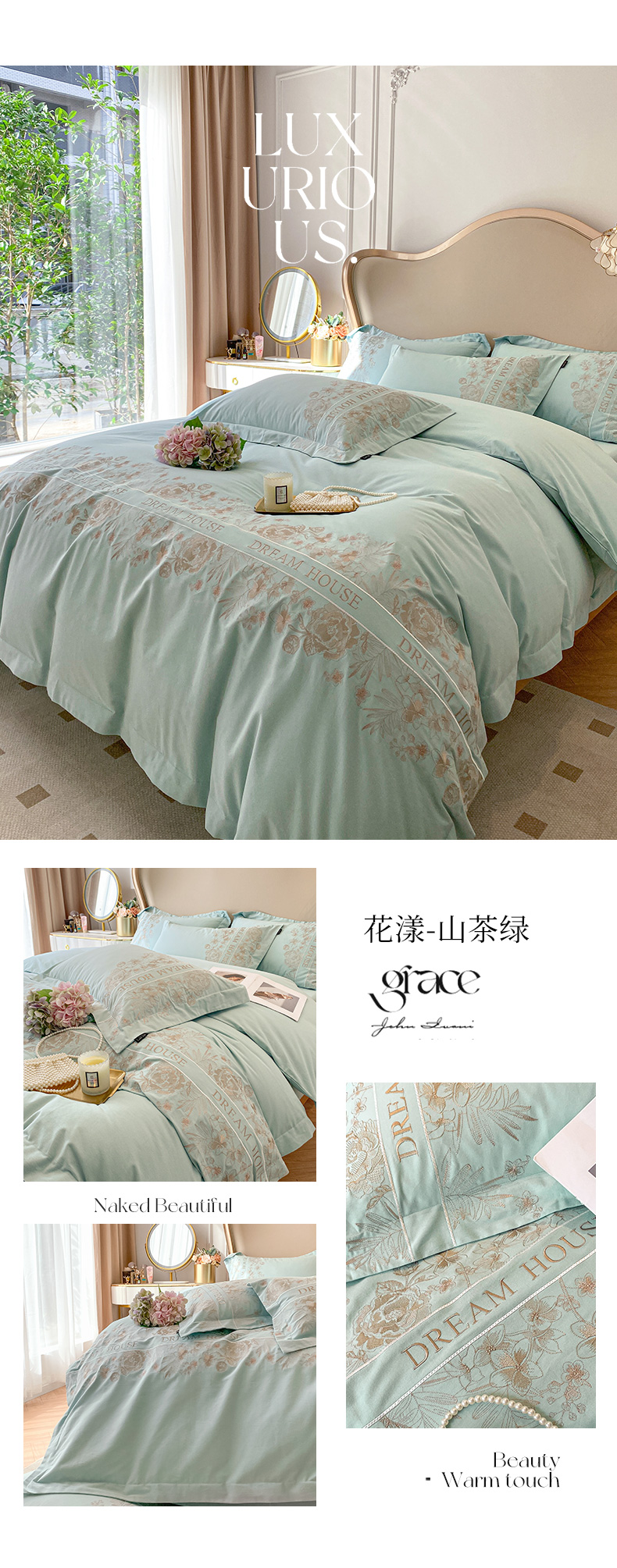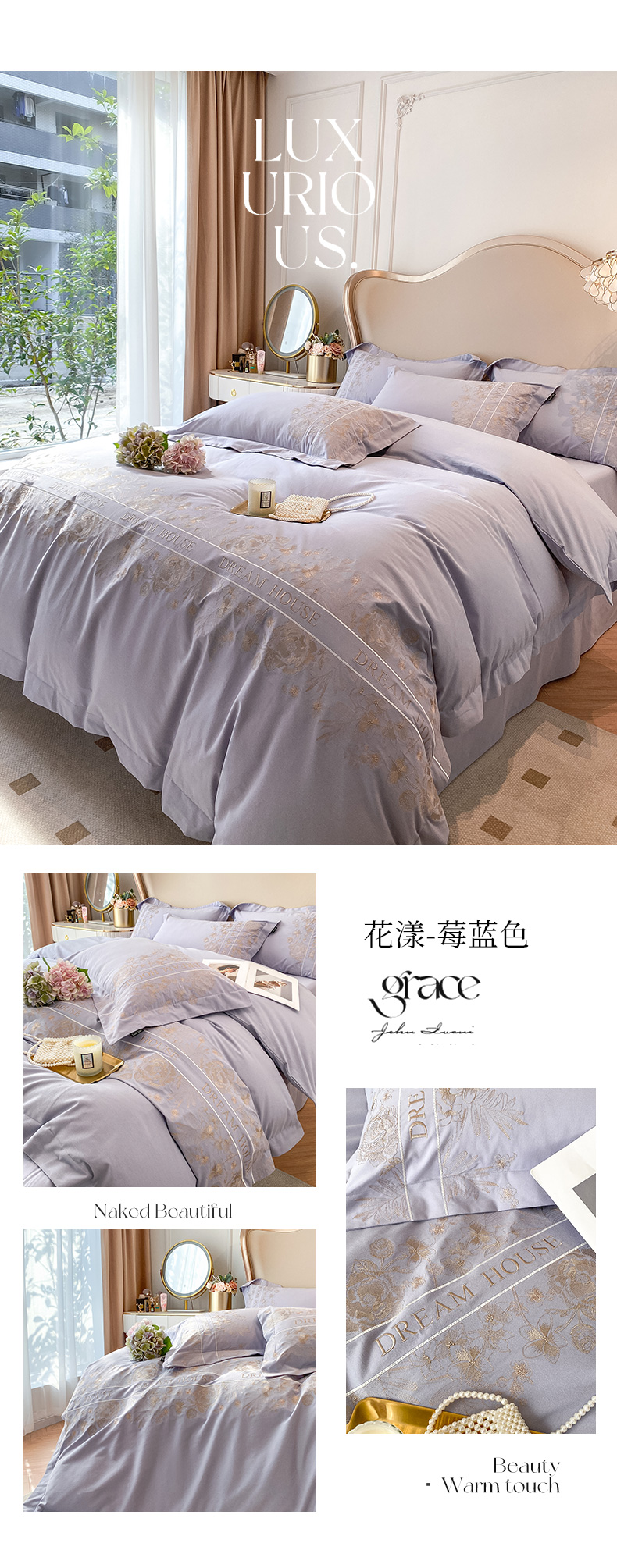 (总) 2025春夏长绒棉四件套纯棉全棉轻奢风床单被套重工刺绣床上用品,芊羽梦-白粉,芊羽梦-茶绿,芊羽梦-黛紫,芊羽梦-慕蓝,芊羽梦-颜粉