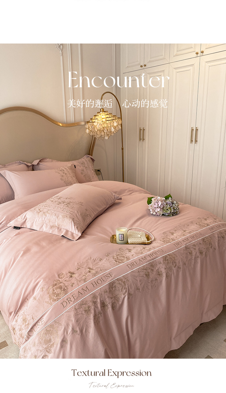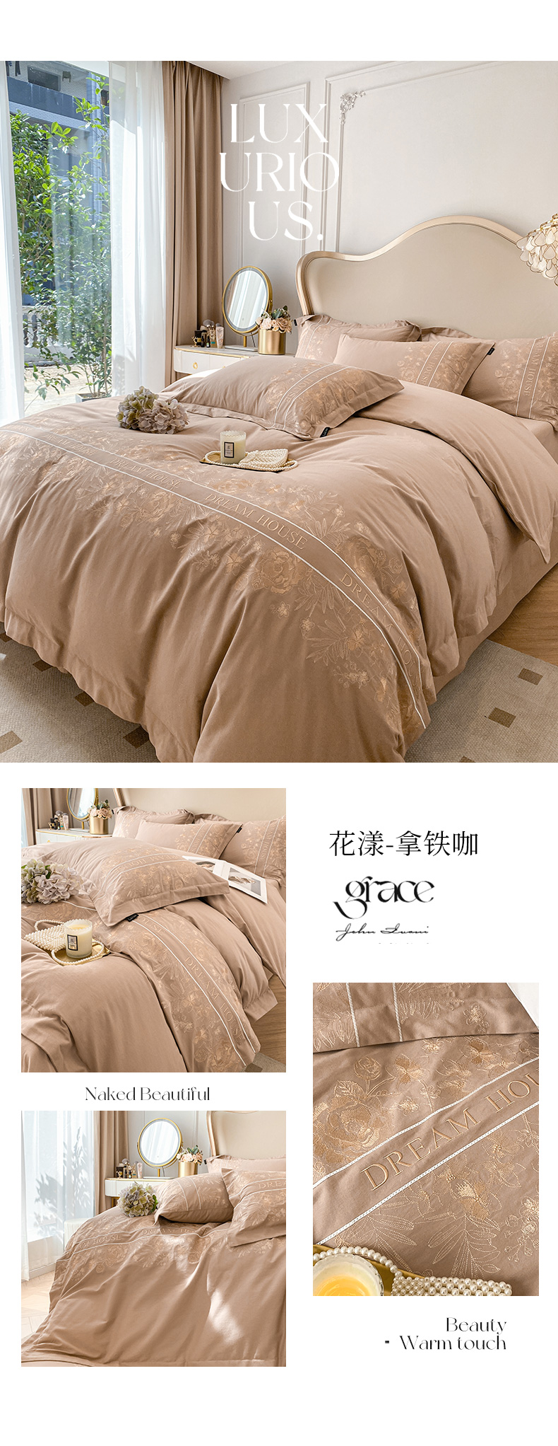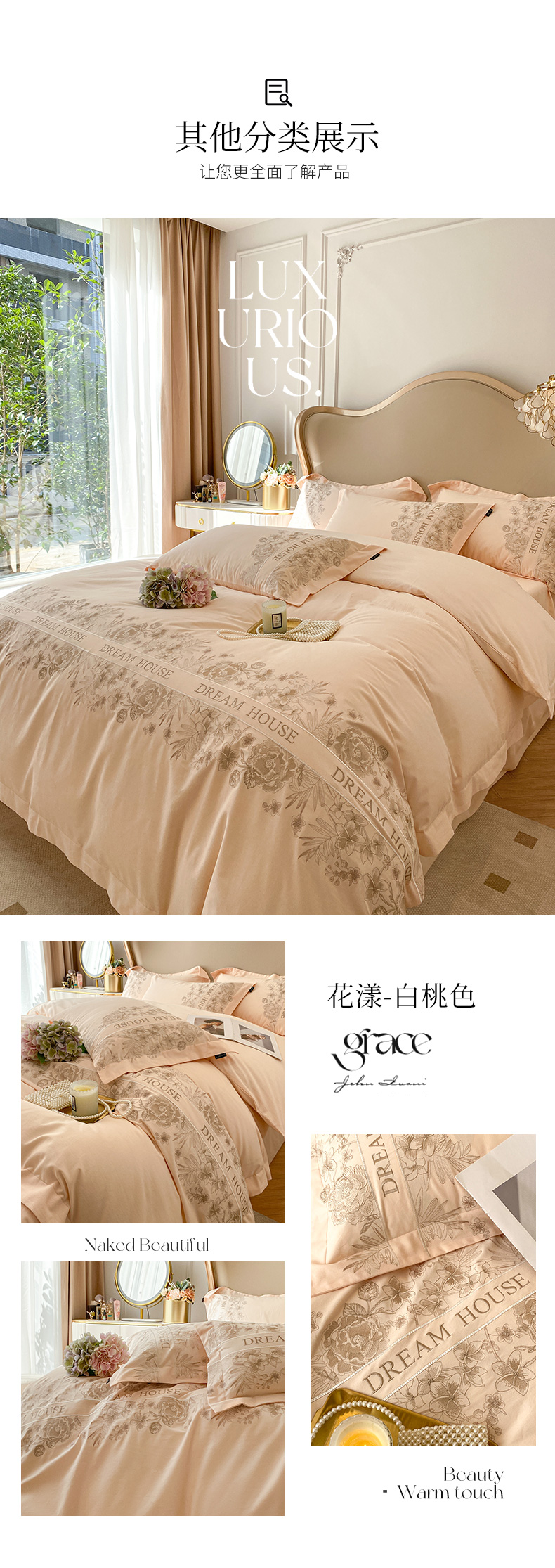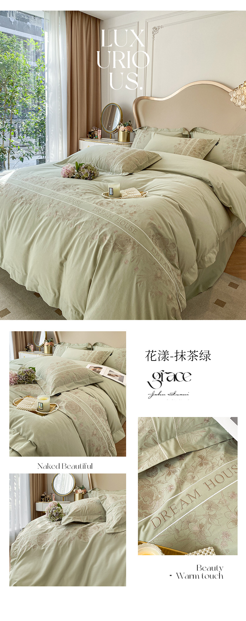 (总) 2025春夏长绒棉四件套纯棉全棉轻奢风床单被套重工刺绣床上用品,芊羽梦-白粉,芊羽梦-茶绿,芊羽梦-黛紫,芊羽梦-慕蓝,芊羽梦-颜粉