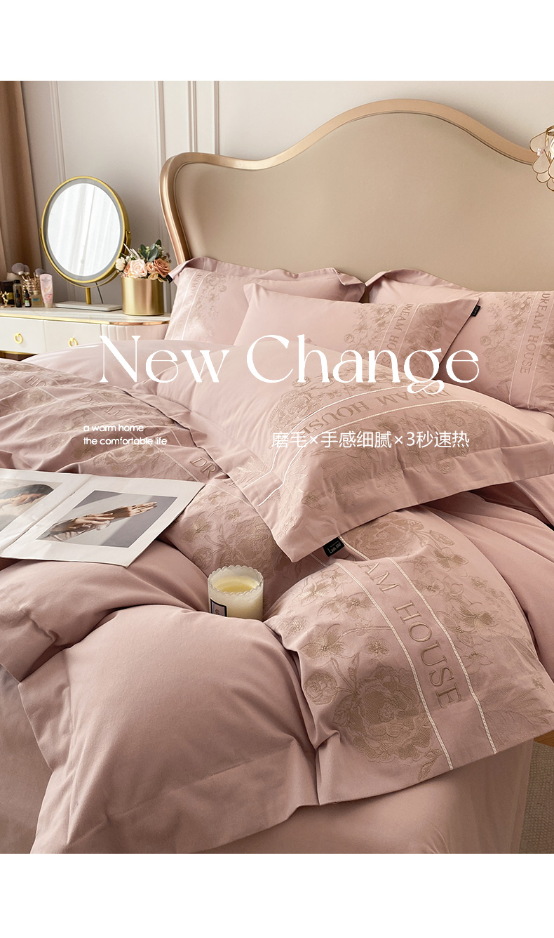 (总) 冬季直播爆款九斤重轻奢高端加厚保暖牛奶绒四件套刺绣宝宝绒轻奢风纯色床单被套床笠款床上用品-花迹,花迹-果汁粉,花迹-蜜豆红,花迹-椰奶蓝